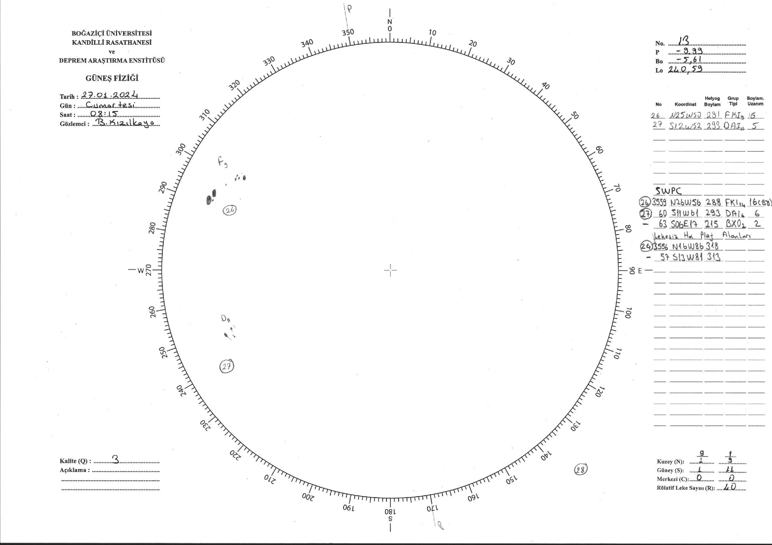Güneş Lekesi Çizimi - 27.01.2024