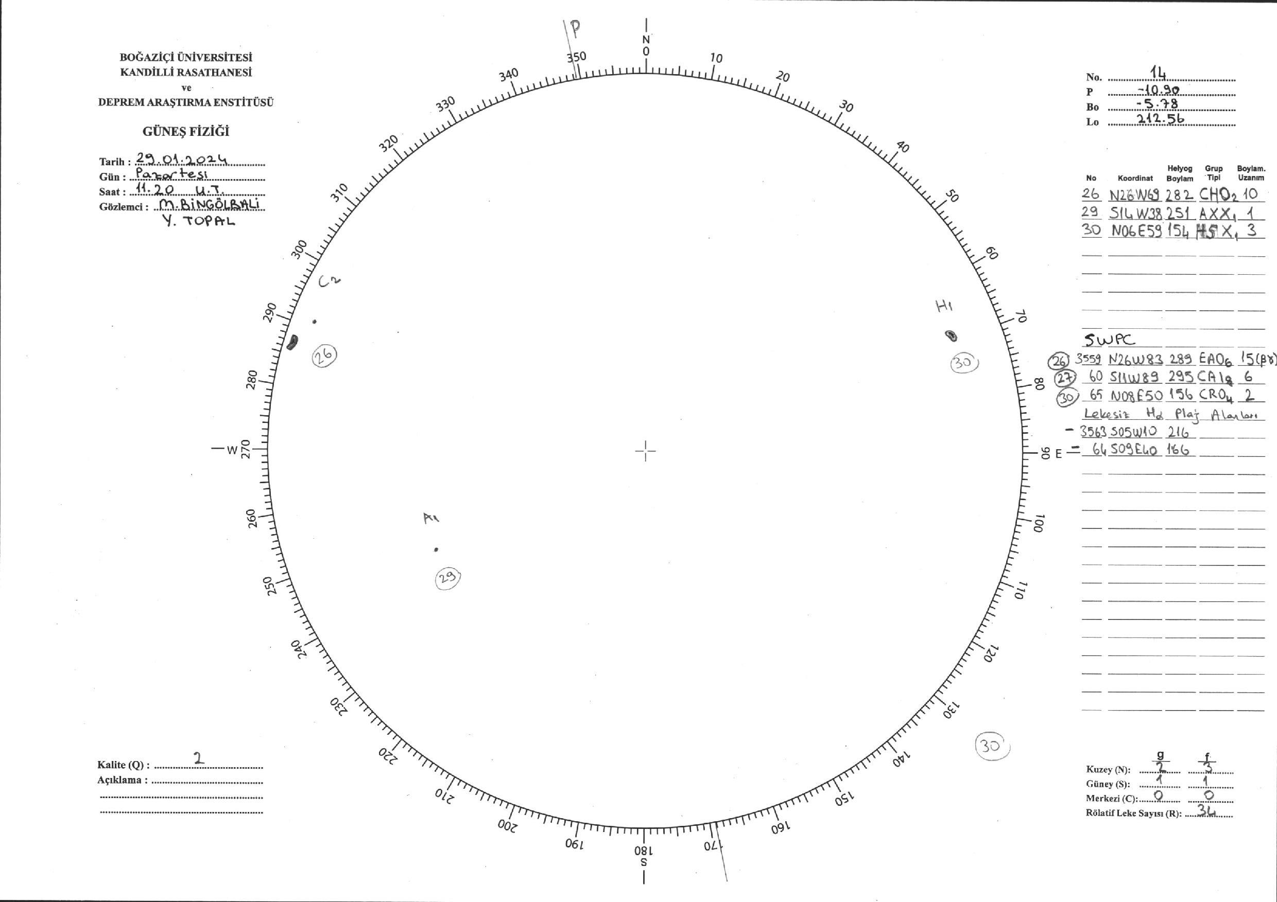Güneş Lekesi Çizimi - 29.01.2024