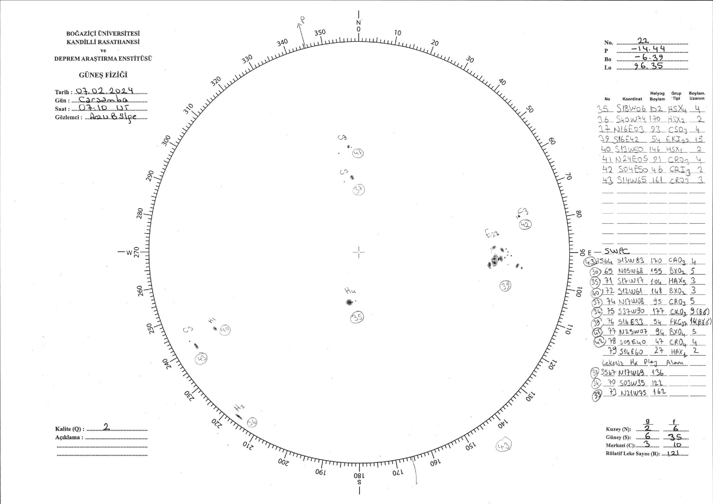 Güneş Lekesi Çizimi - 07.02.2024