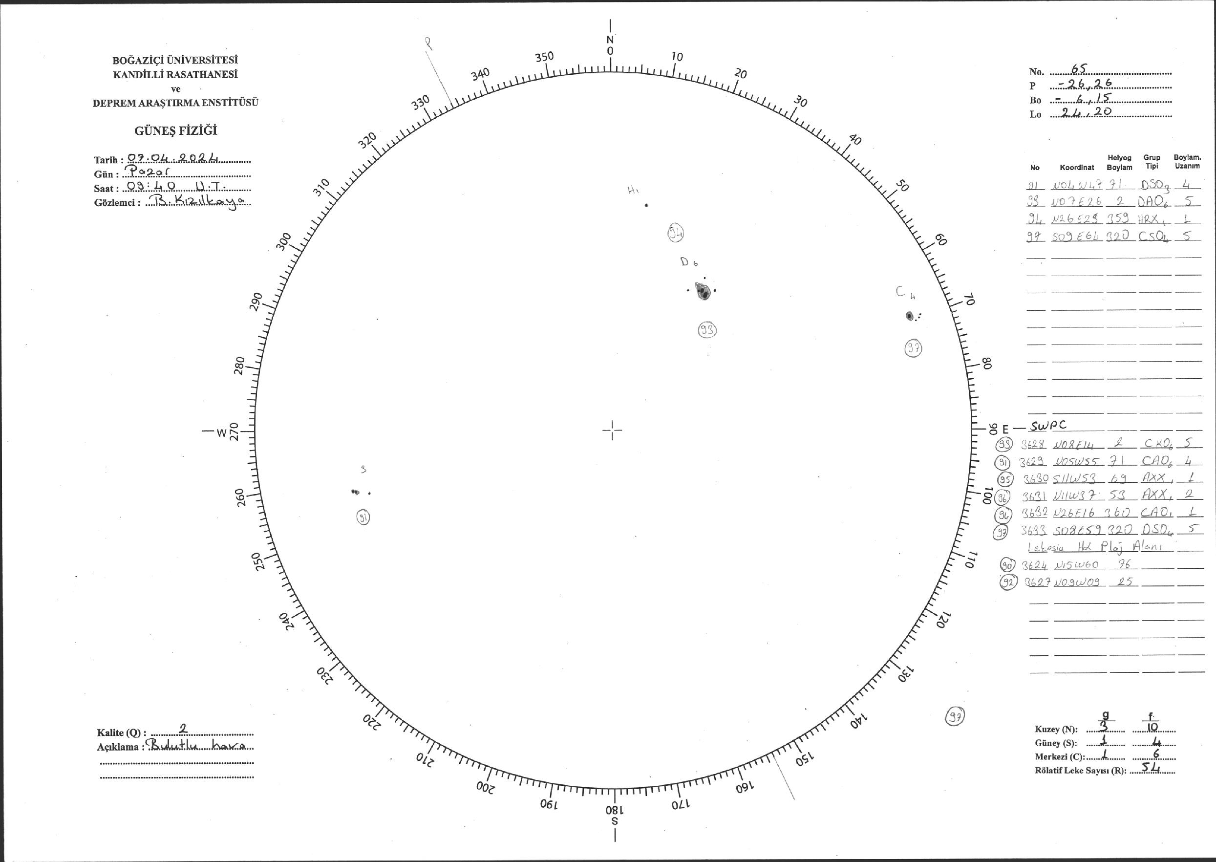 Güneş Lekesi Çizimi - 07.04.2024