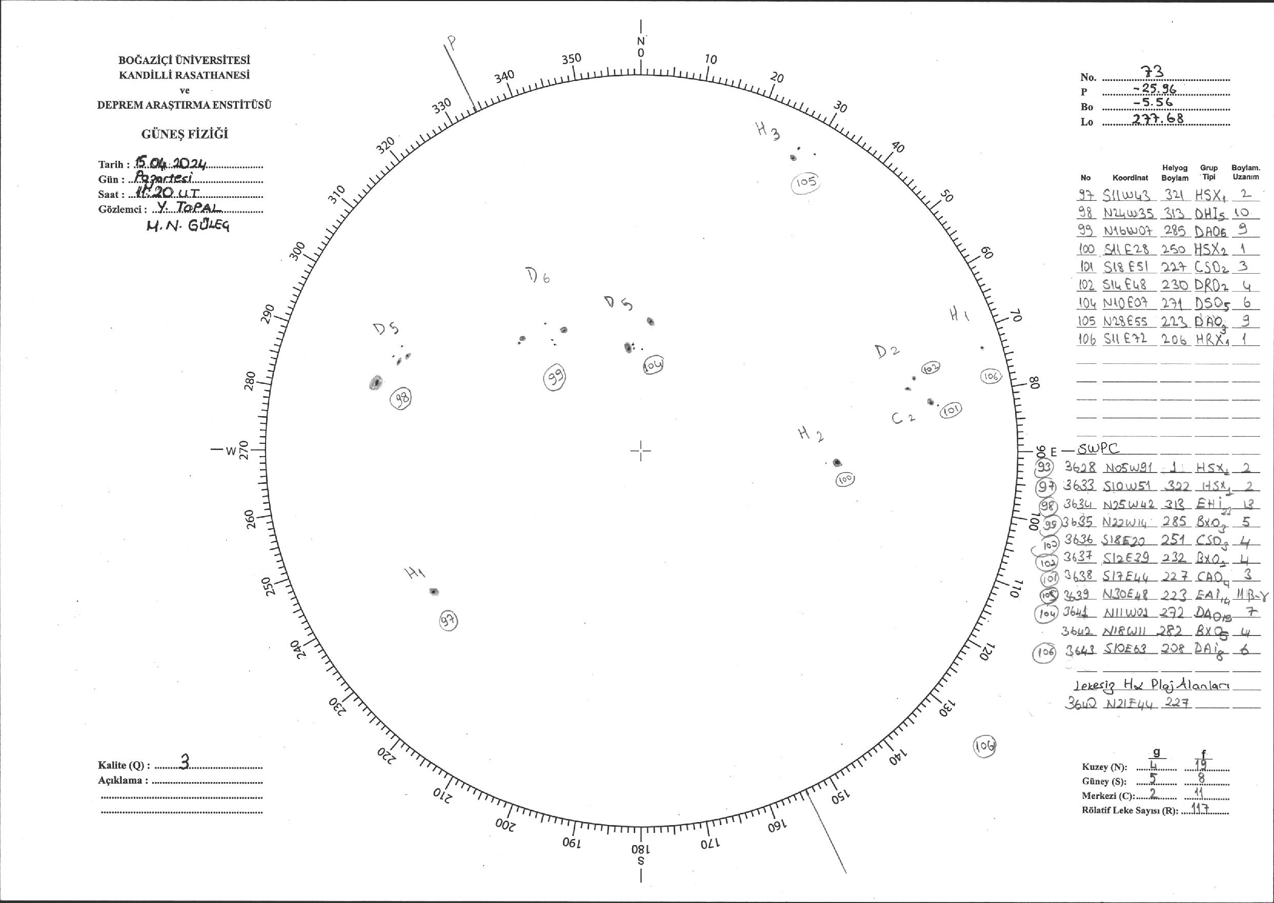Güneş Lekesi Çizimi - 15.04.2024