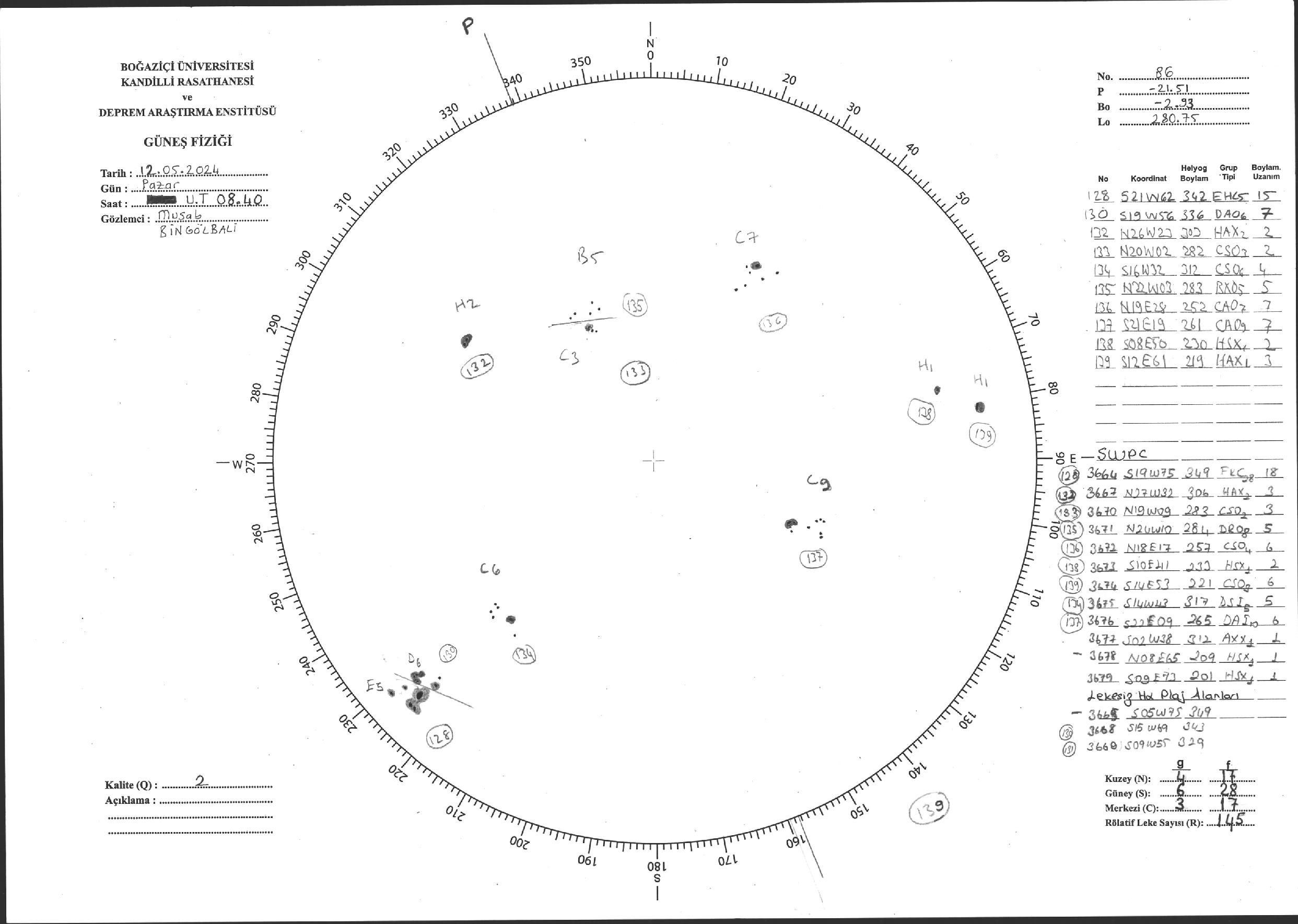 Güneş Lekesi Çizimi - 12.05.2024