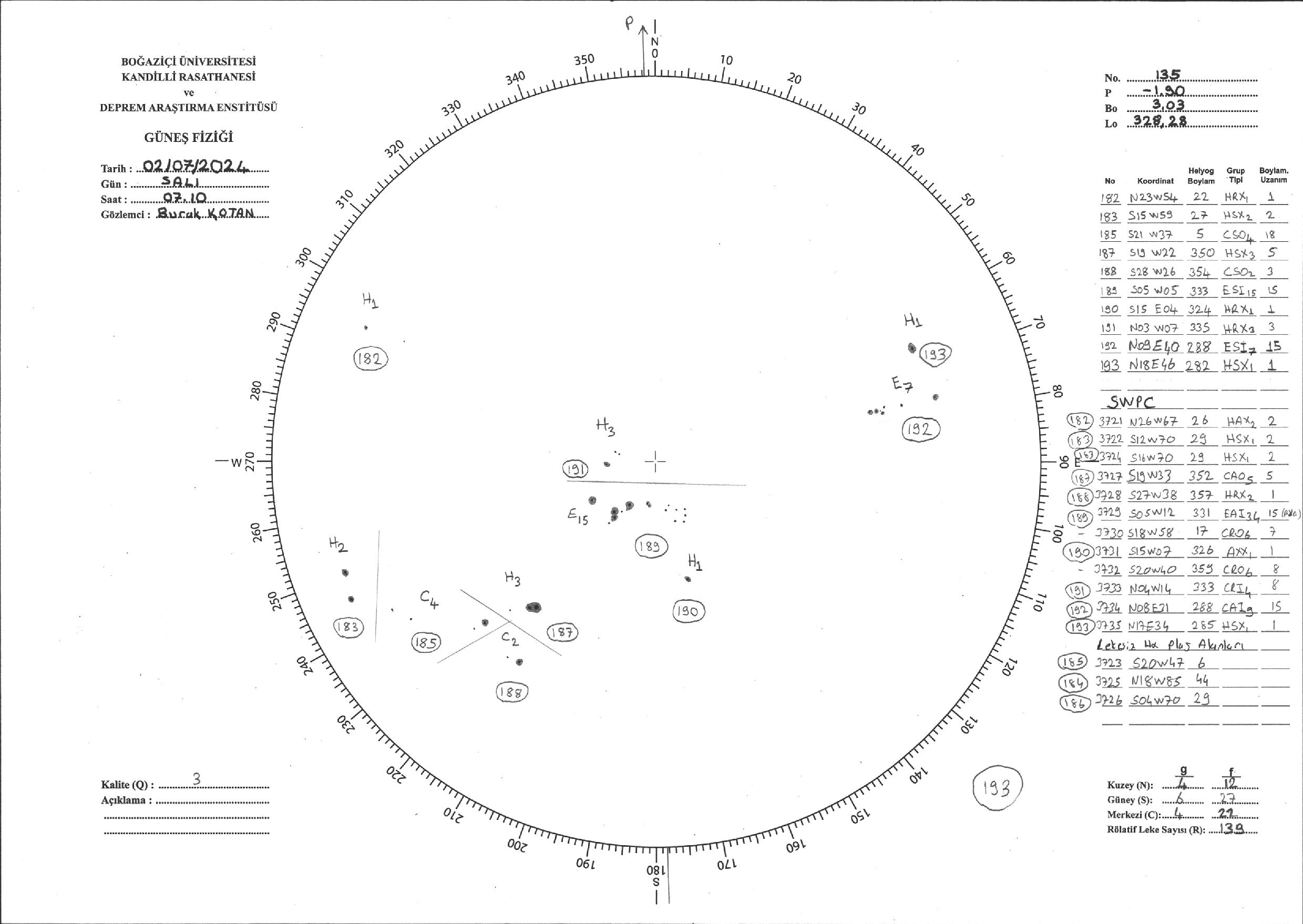 Güneş Lekesi Çizimi - 02.07.2024