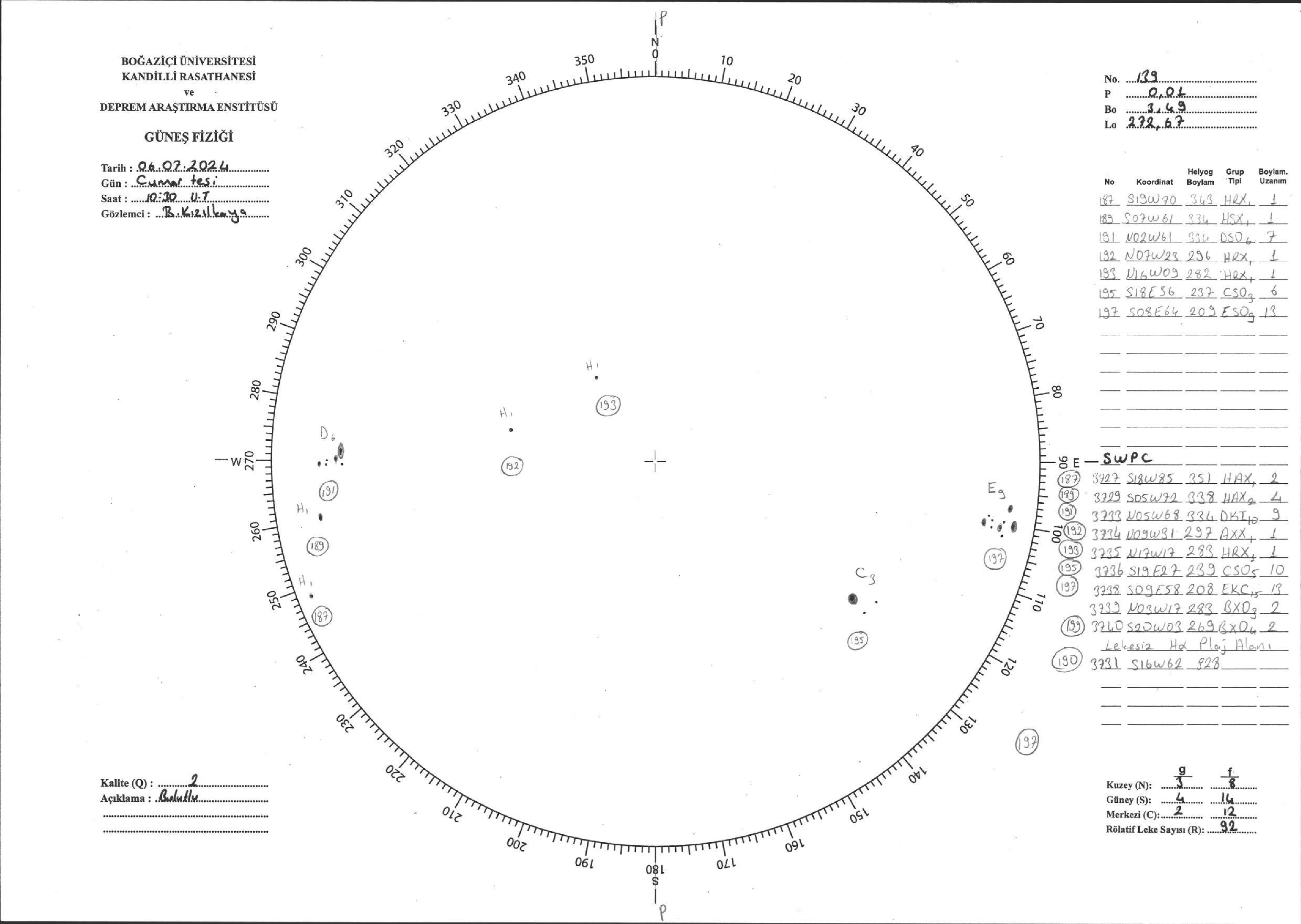 Güneş Lekesi Çizimi - 06.07.2024