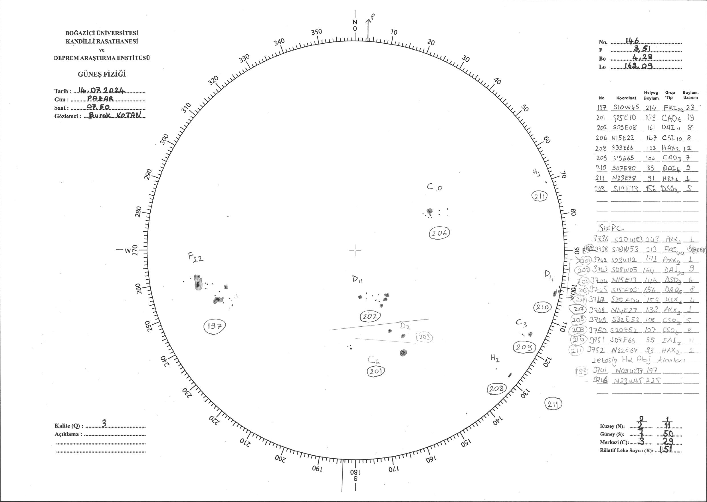 Güneş Lekesi Çizimi - 14.07.2024