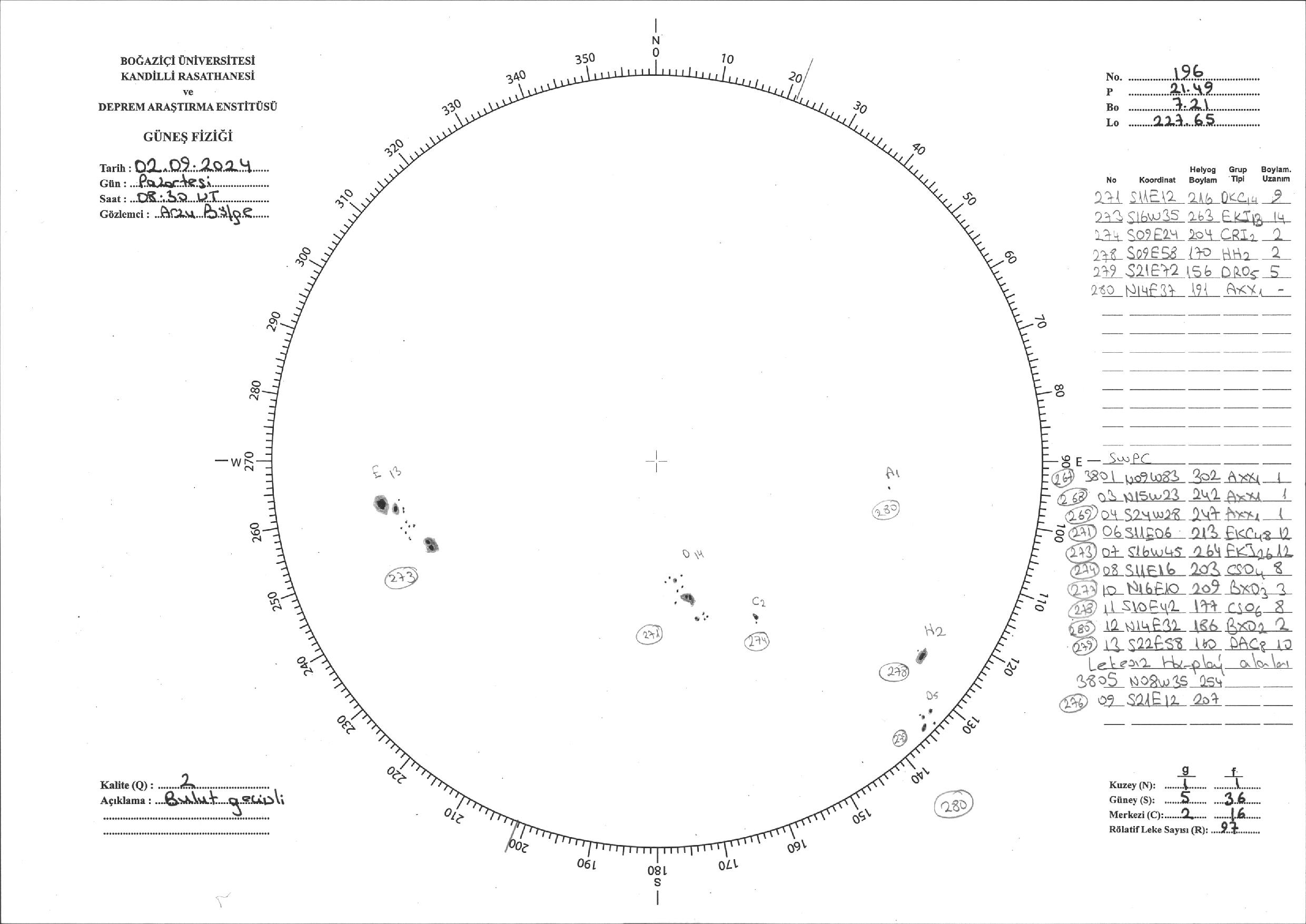 Güneş Lekesi Çizimi - 02.09.2024