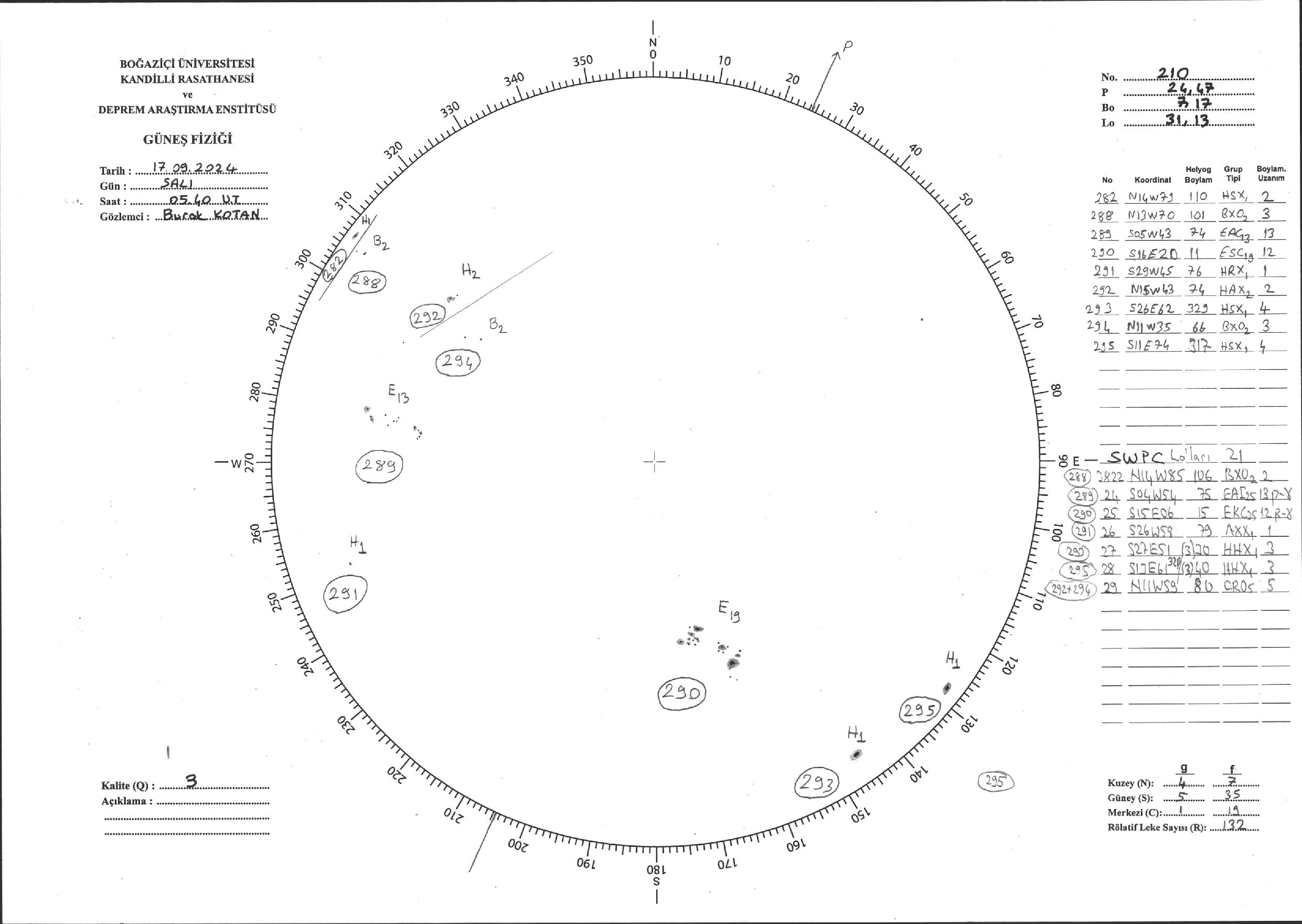 Güneş Lekesi Çizimi - 17.09.2024
