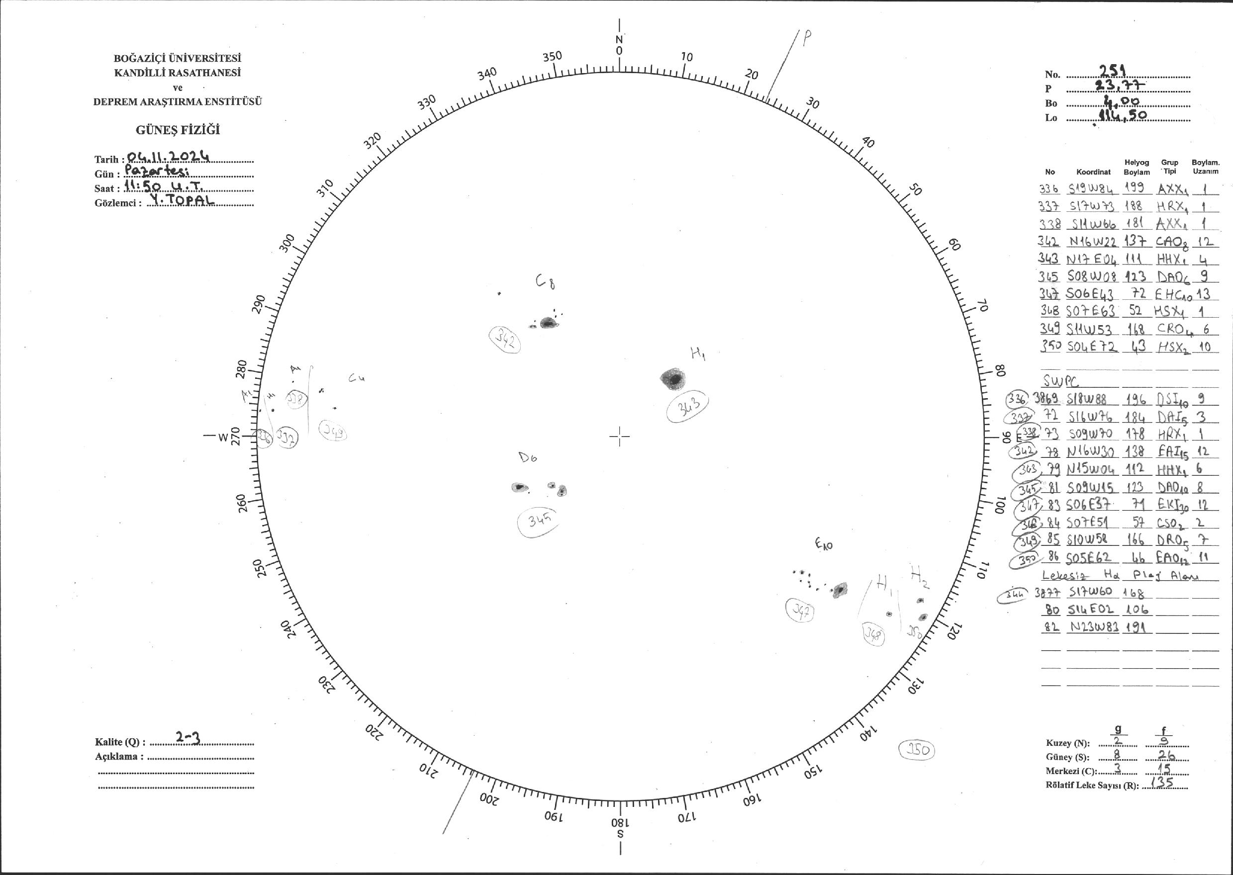 Güneş Lekesi Çizimi - 04.11.2024
