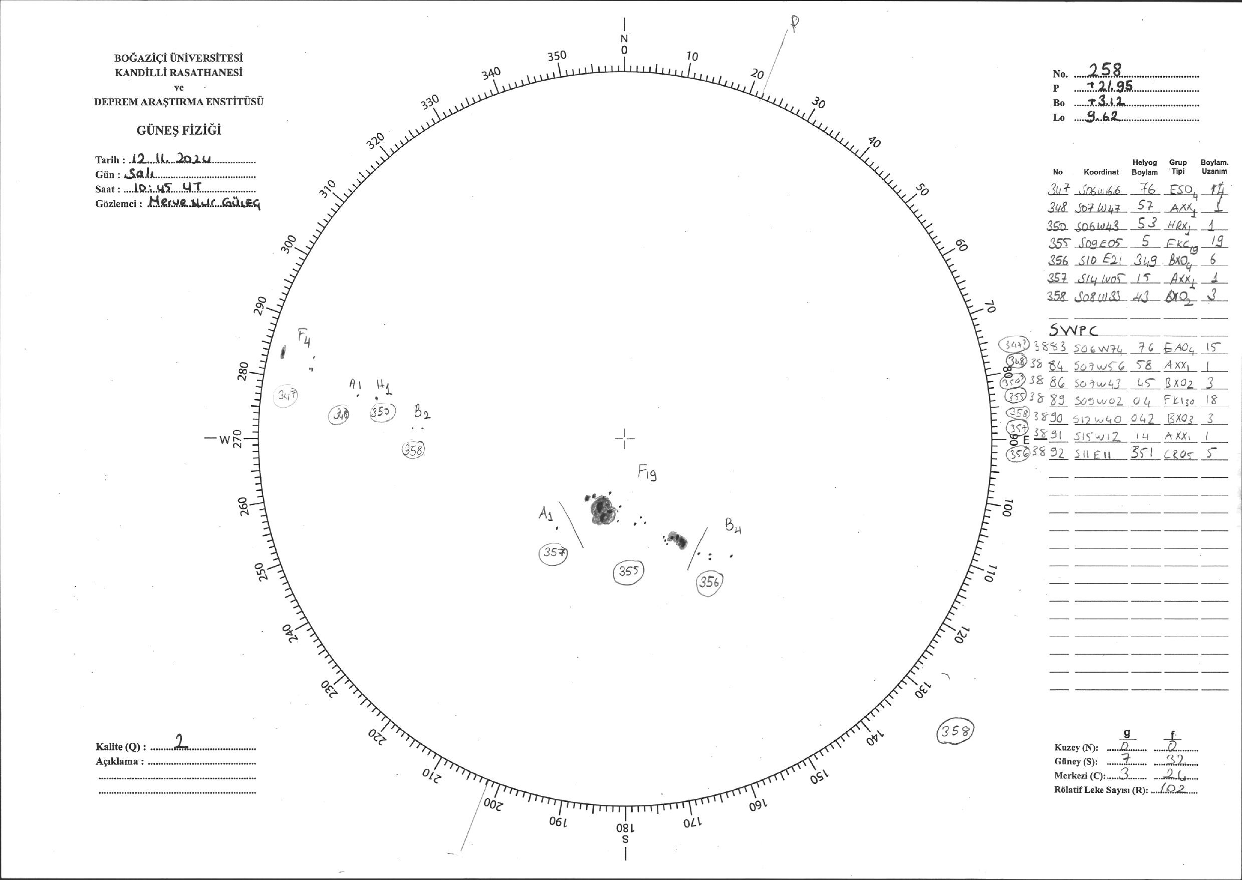 Güneş Lekesi Çizimi - 12.11.2024