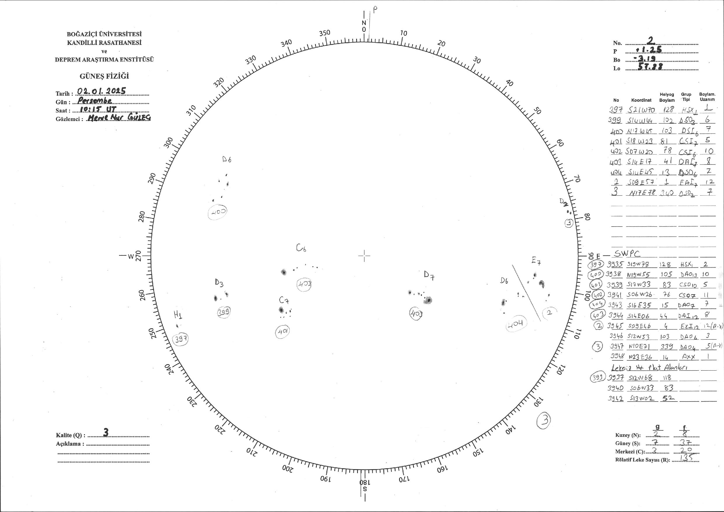 Güneş Lekesi Çizimi - 02.01.2025
