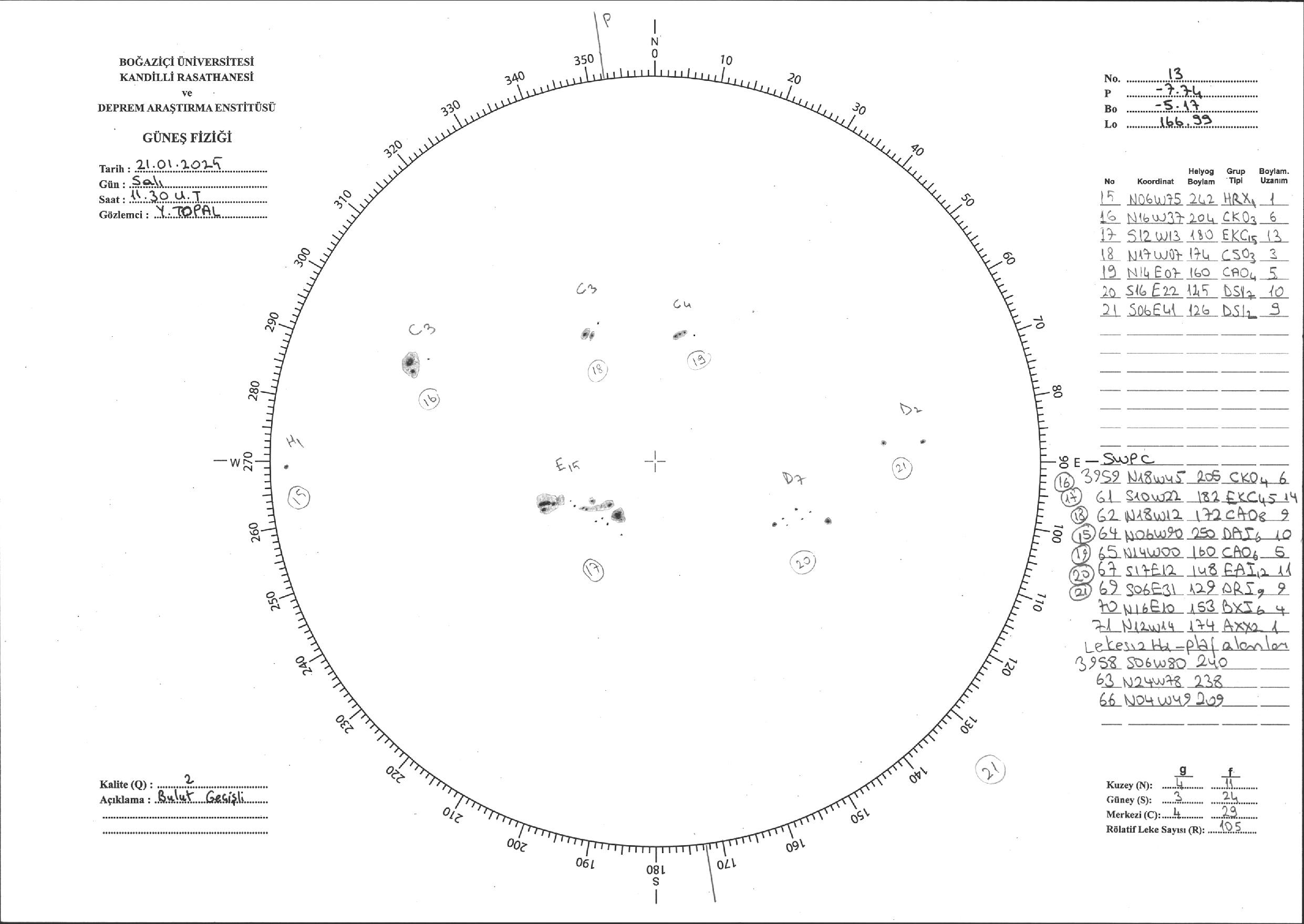 Güneş Lekesi Çizimi - 21.01.2025