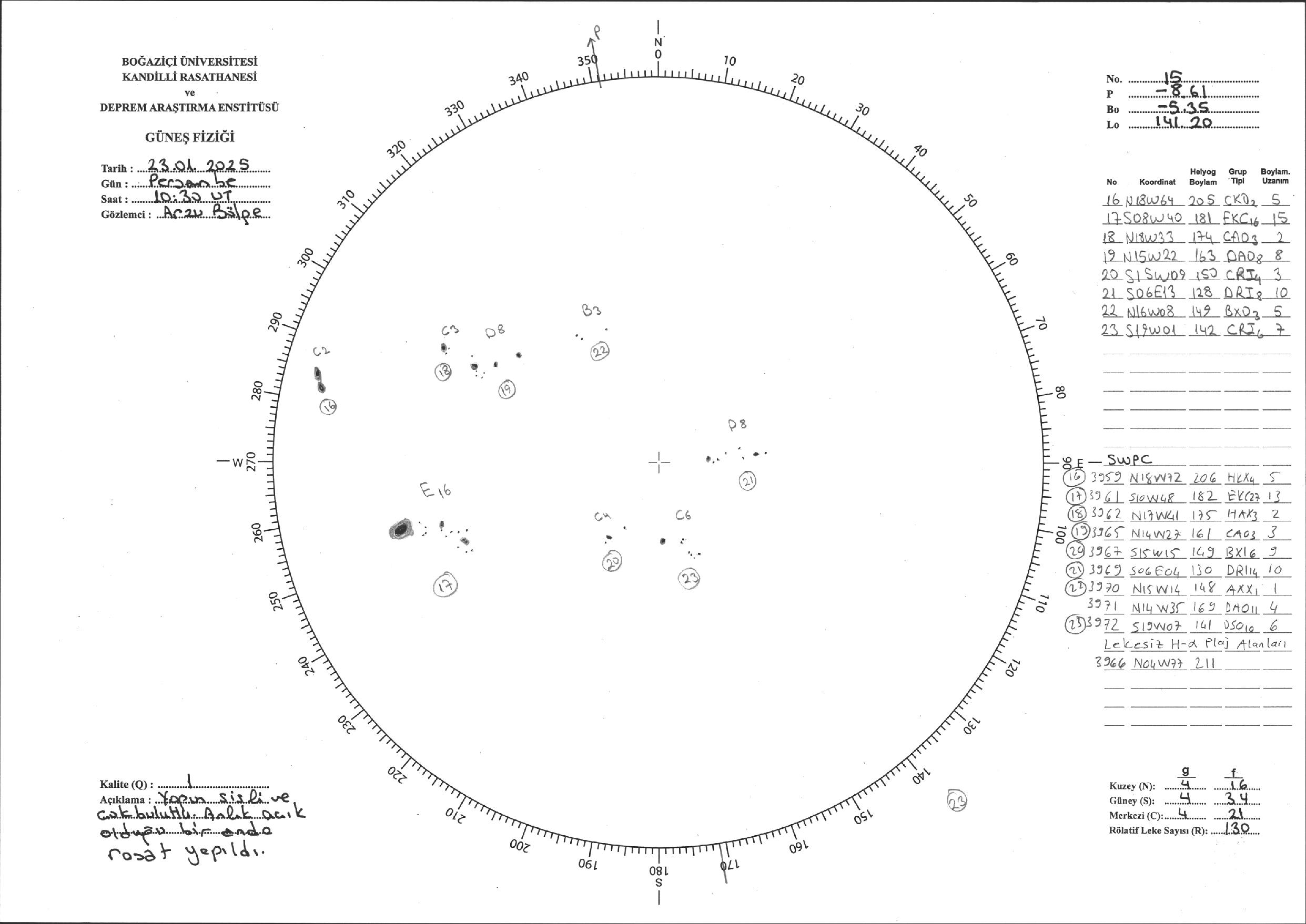 Güneş Lekesi Çizimi - 23.01.2025