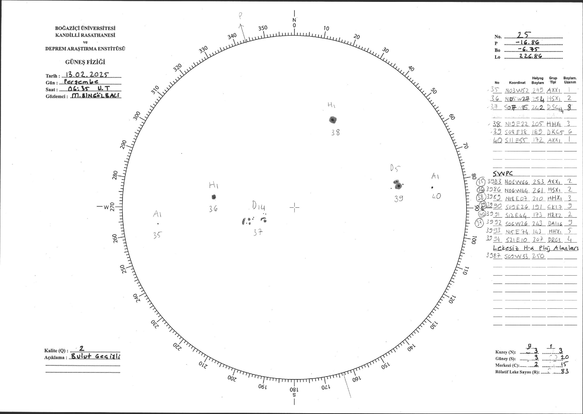 Güneş Lekesi Çizimi - 13.02.2025