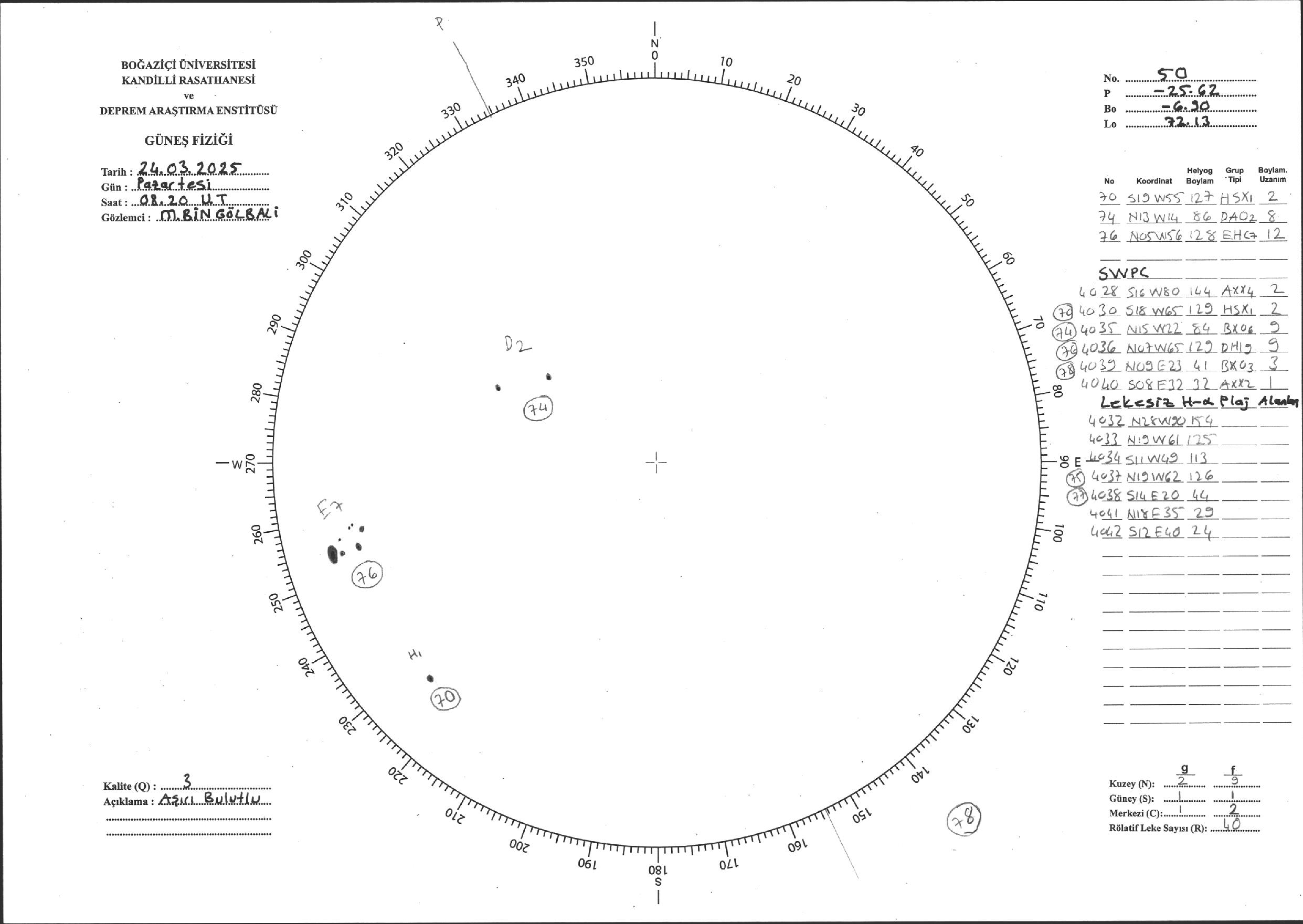 Güneş Lekesi Çizimi - 24.03.2025
