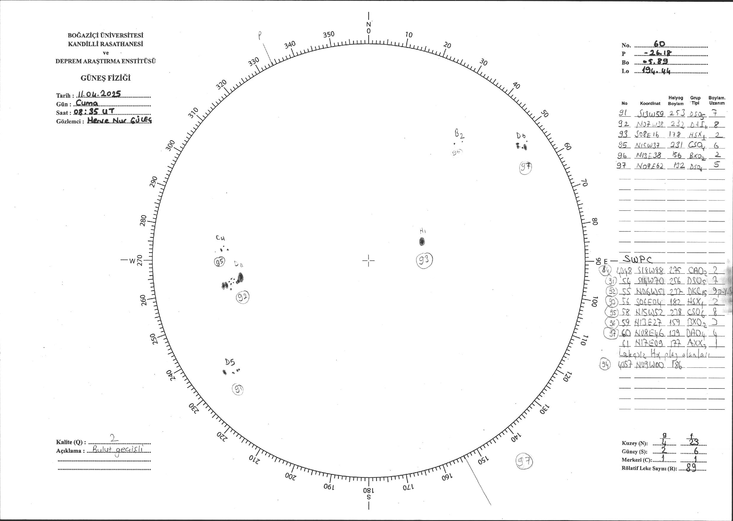 Güneş Lekesi Çizimi - 11.04.2025