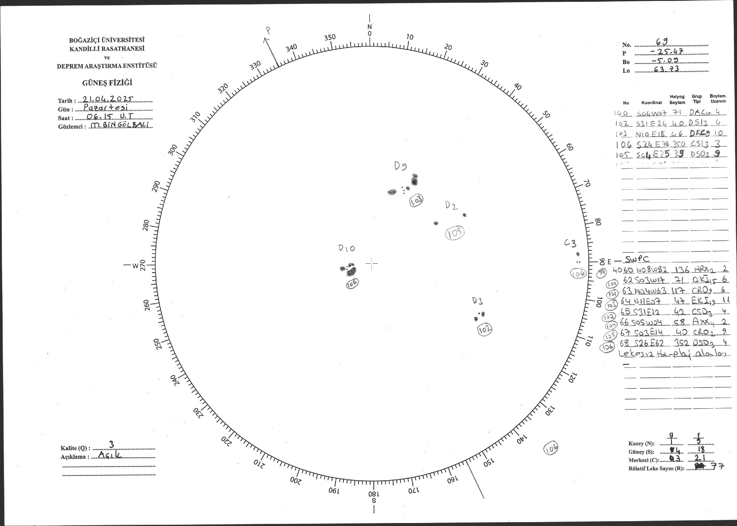 Güneş Lekesi Çizimi - 21.04.2025
