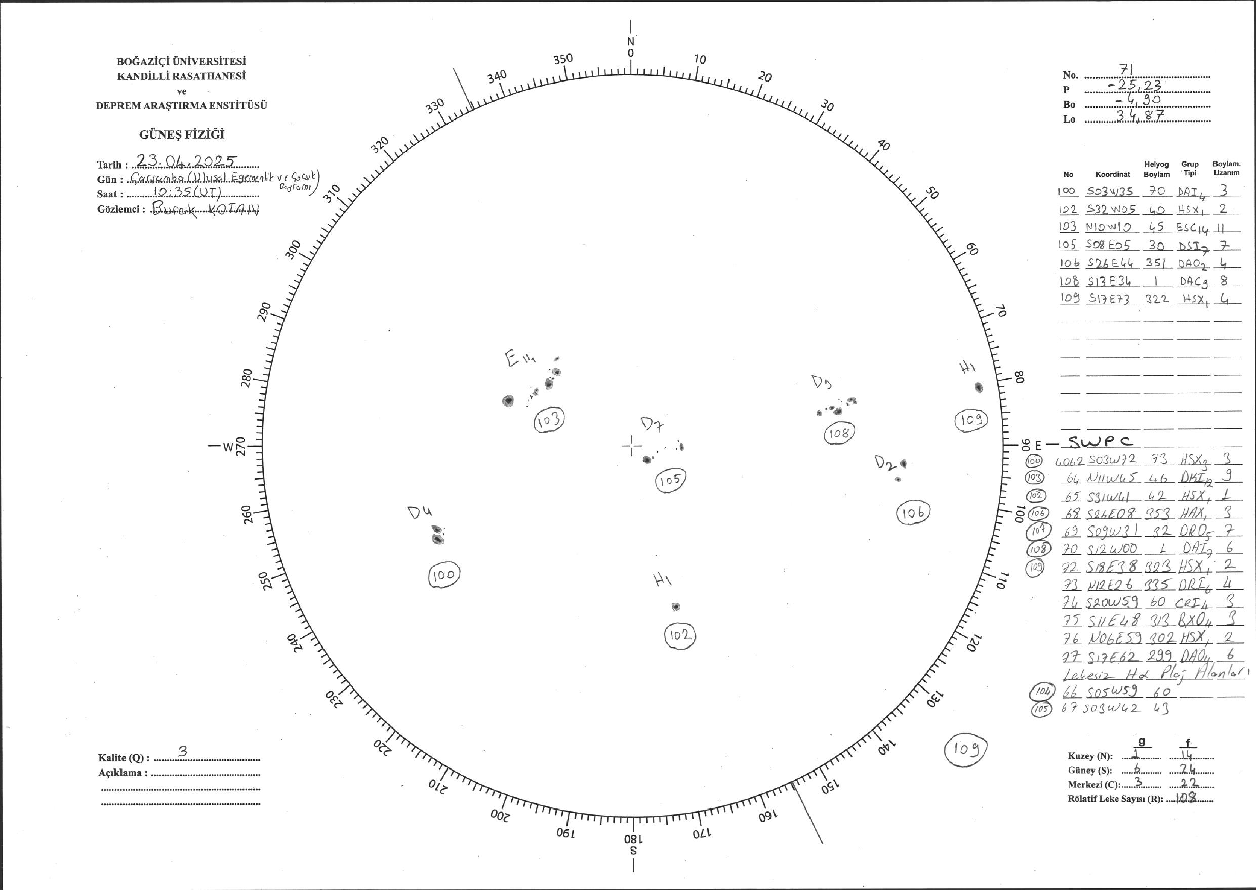 Güneş Lekesi Çizimi - 23.04.2025