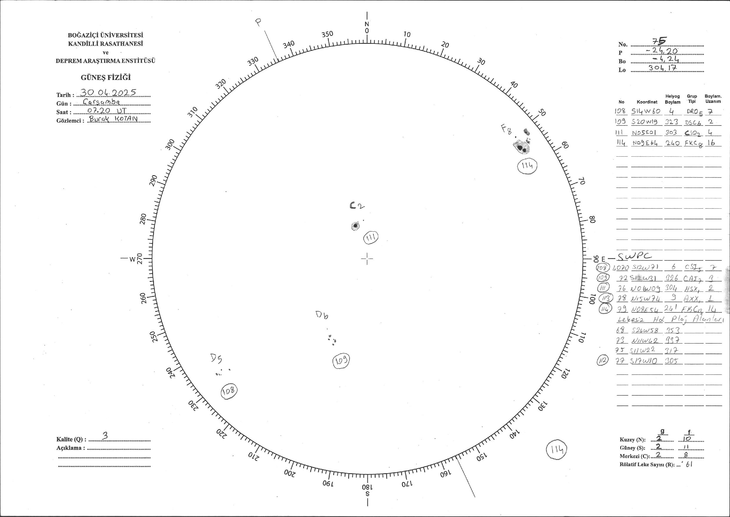Güneş Lekesi Çizimi - 30.04.2025