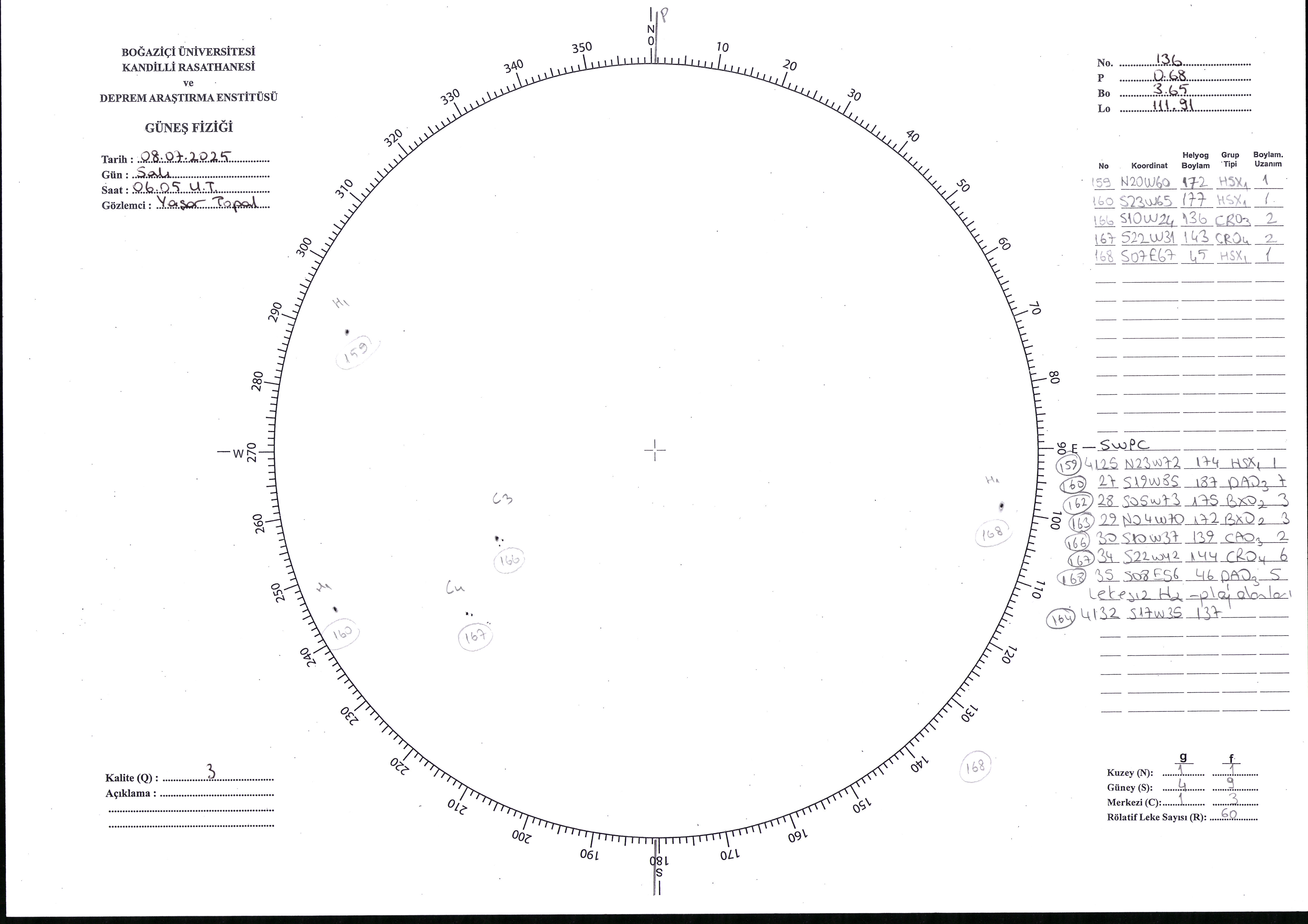Güneş Lekesi Çizimi - 08.07.2025