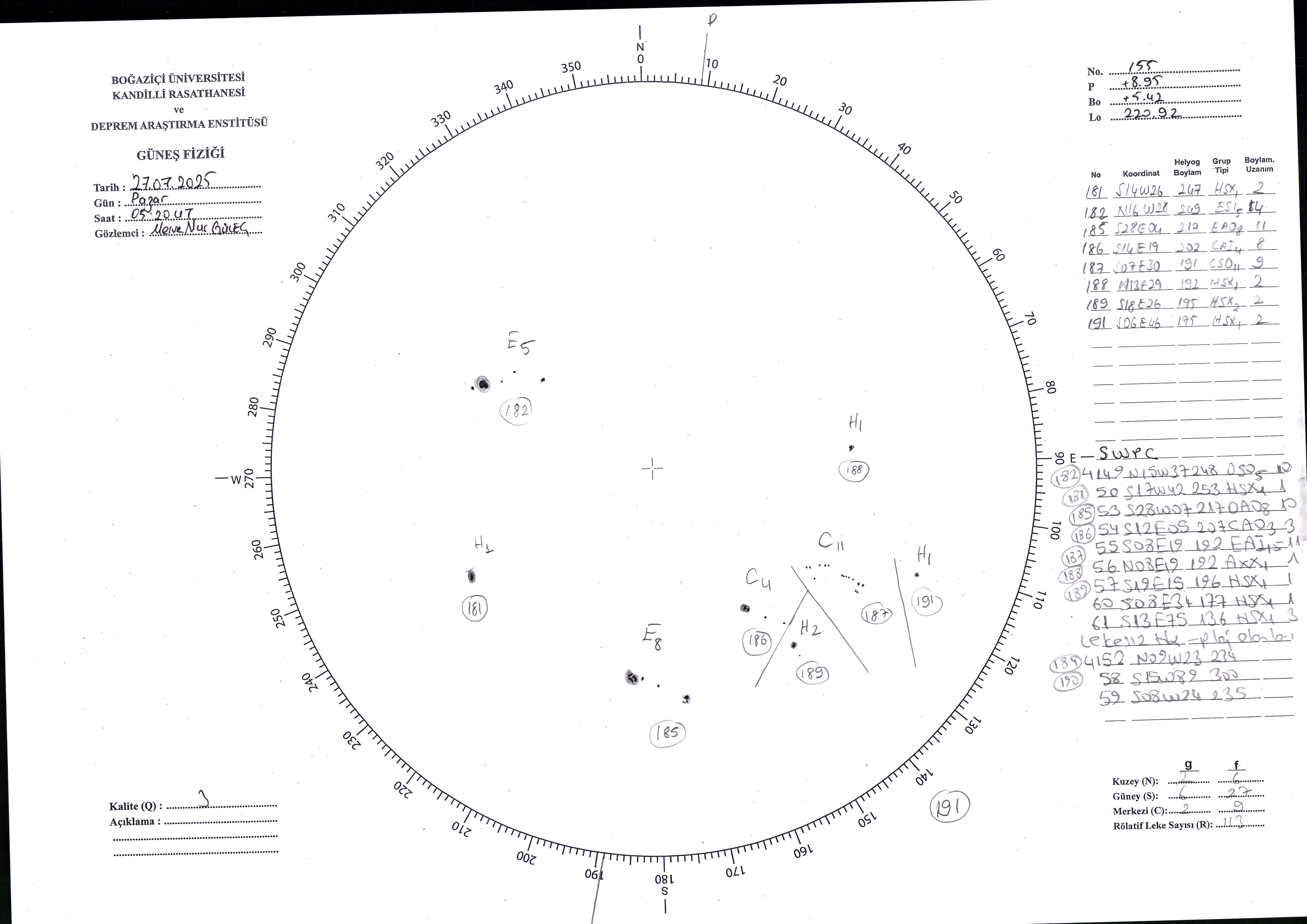 Güneş Lekesi Çizimi - 27.07.2025