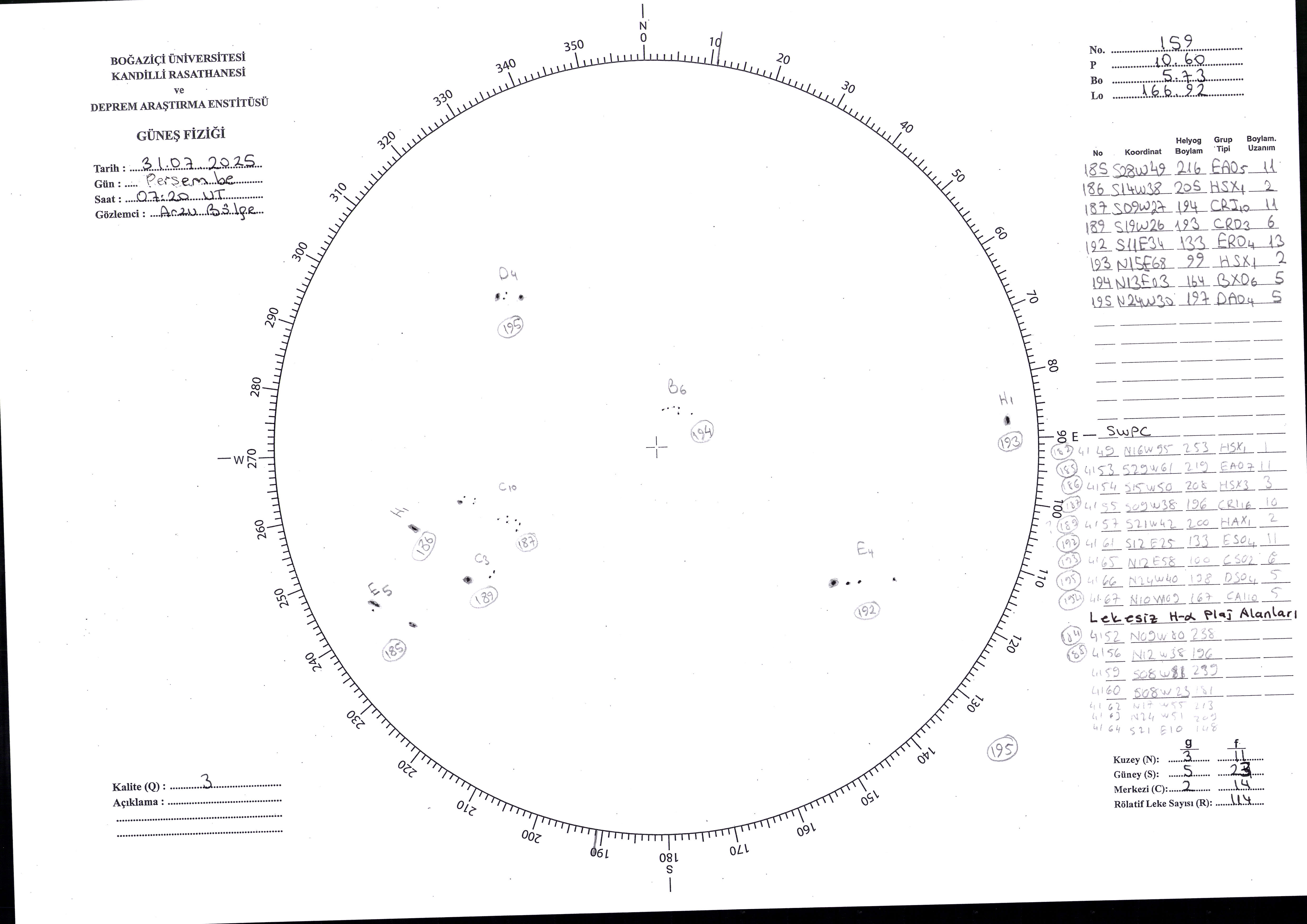 Güneş Lekesi Çizimi - 31.07.2025