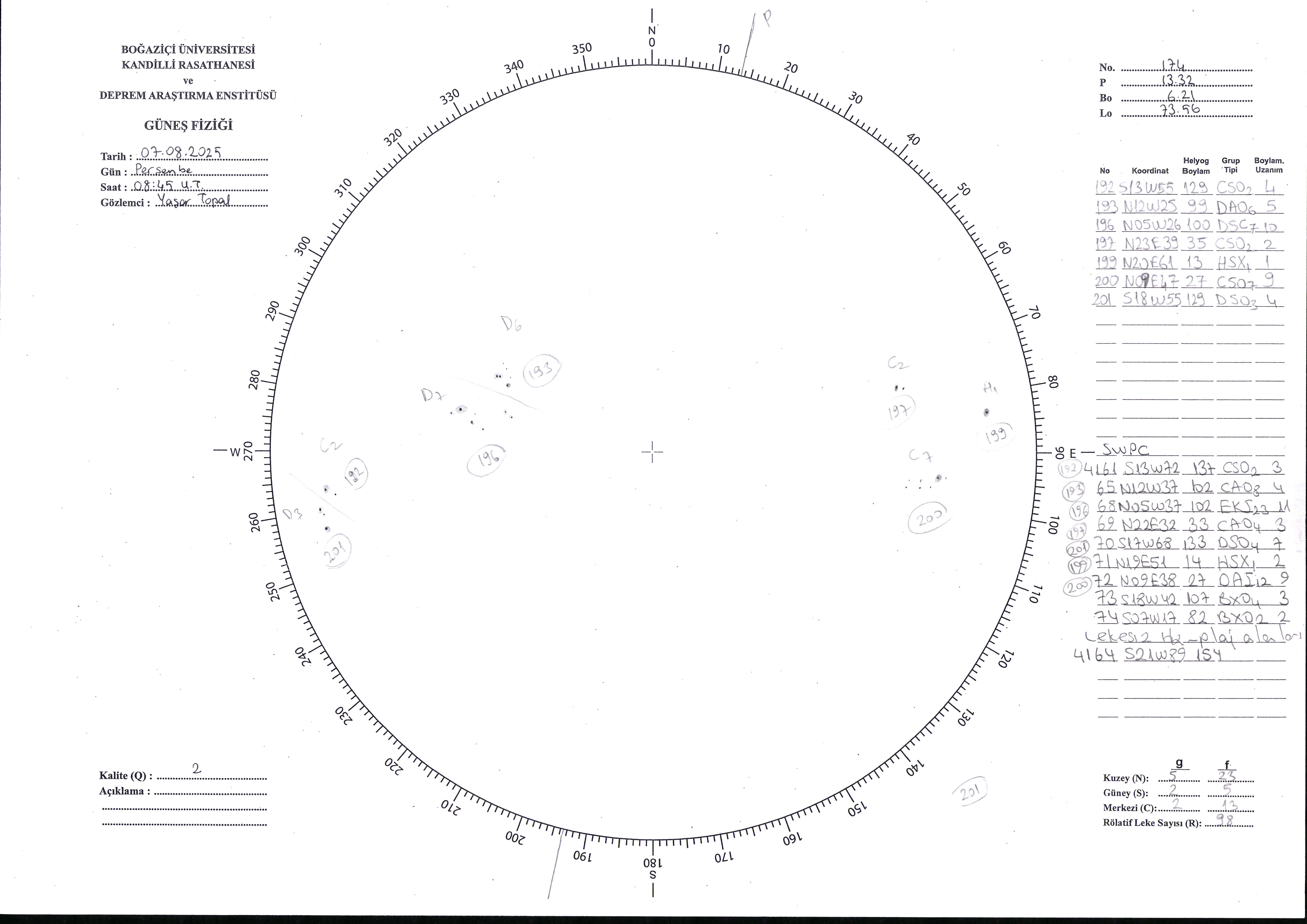 Güneş Lekesi Çizimi - 07.08.2025