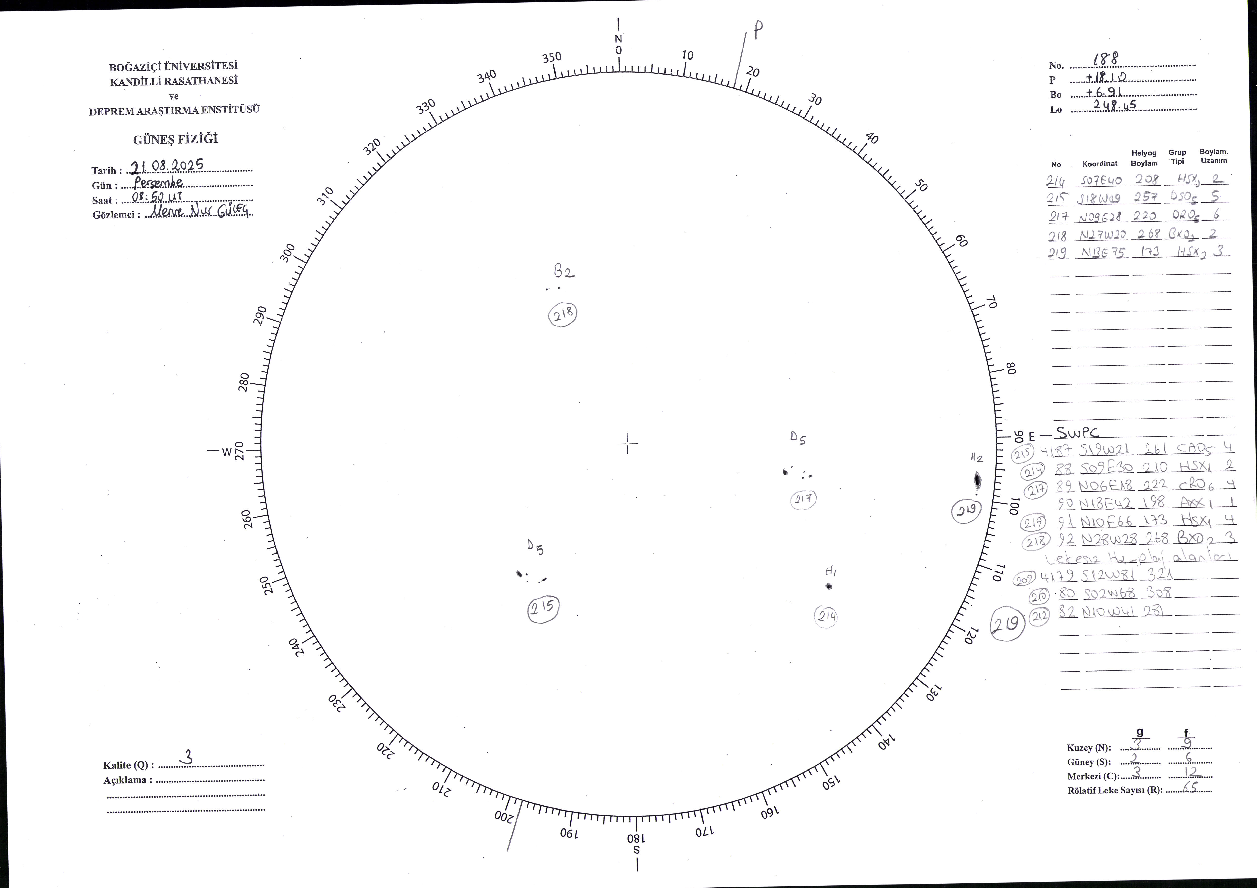 Güneş Lekesi Çizimi - 21.08.2025