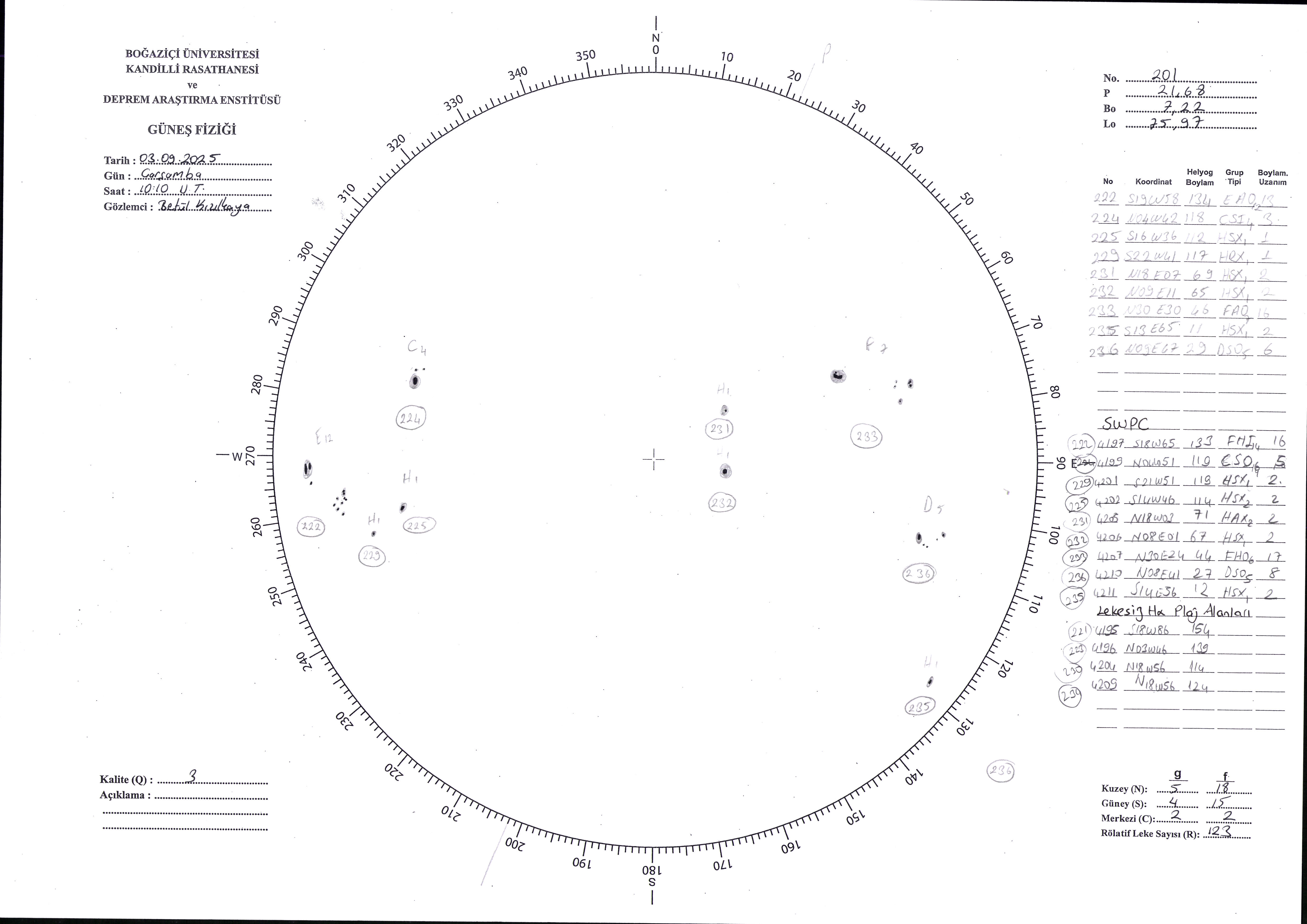 Güneş Lekesi Çizimi - 03.09.2025