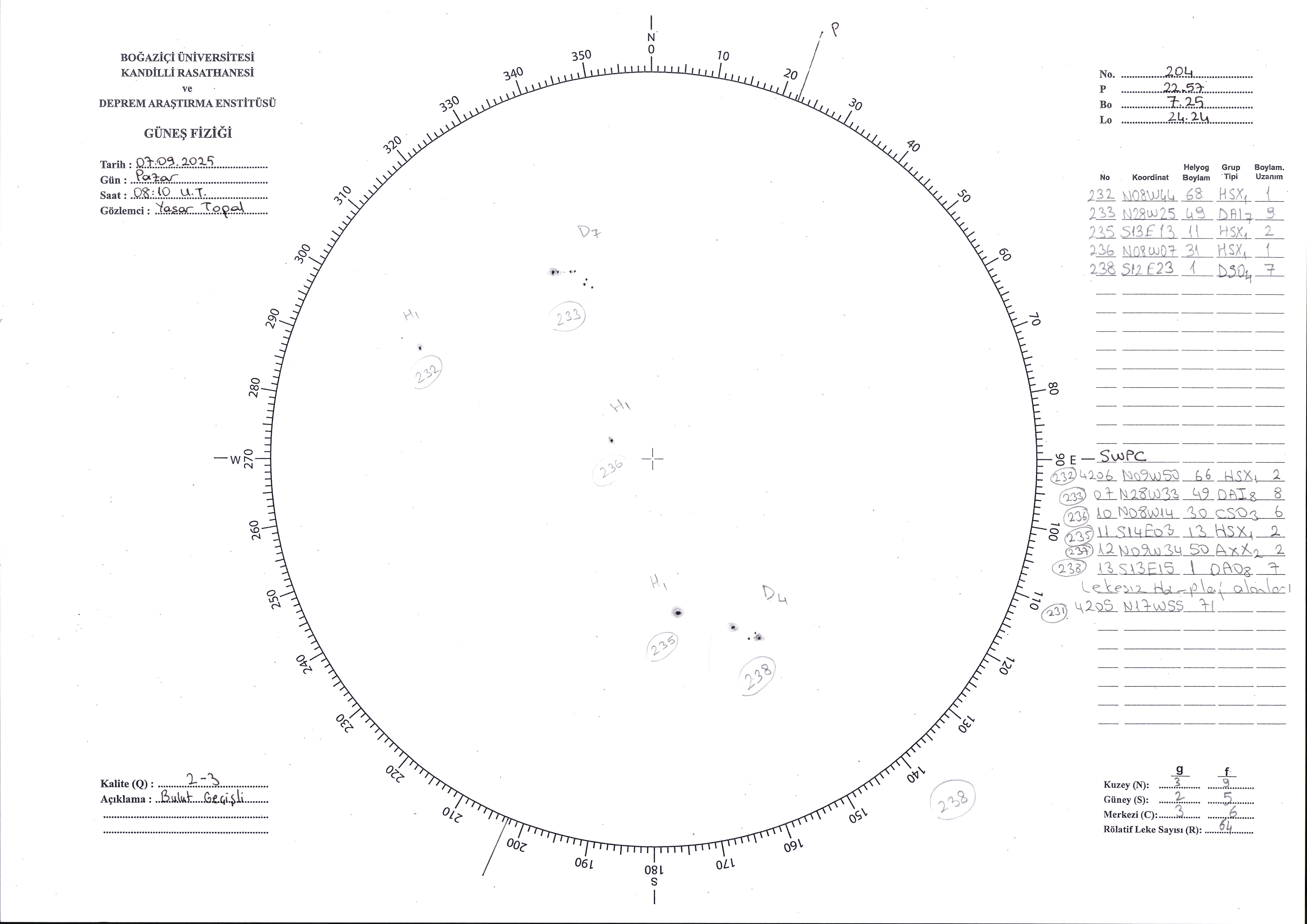 Güneş Lekesi Çizimi - 07.09.2025