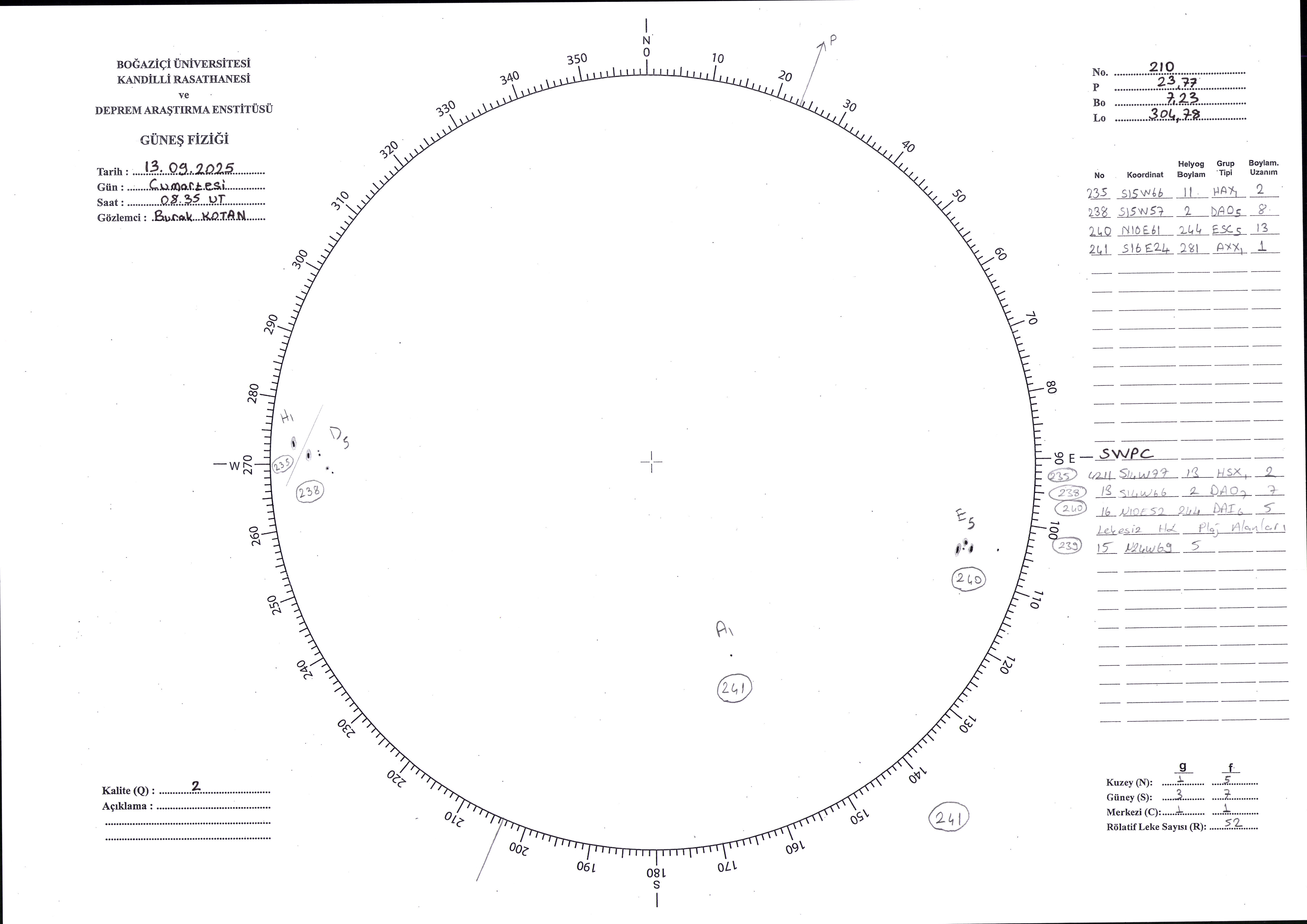 Güneş Lekesi Çizimi - 13.09.2025