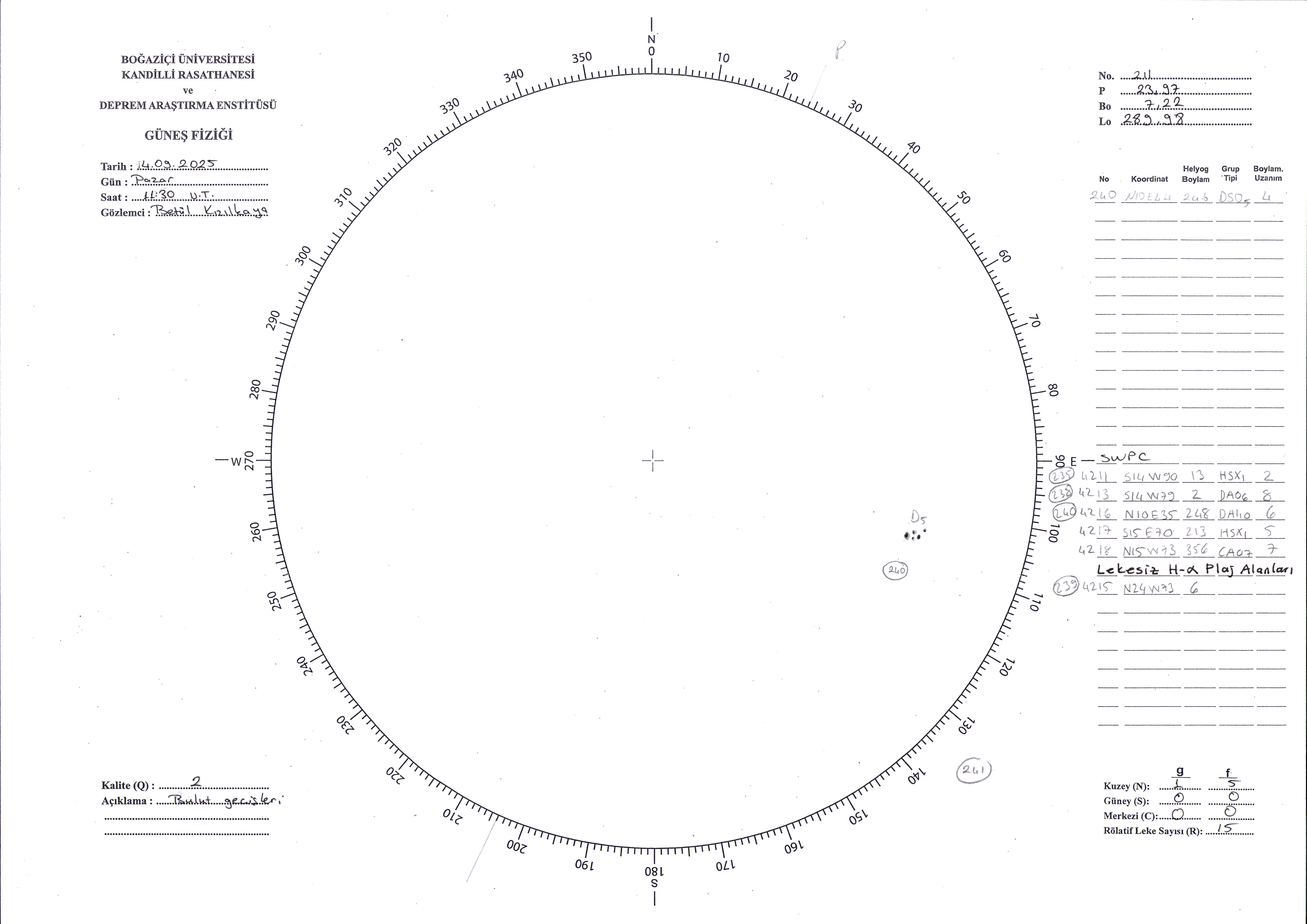 Güneş Lekesi Çizimi - 14.09.2025
