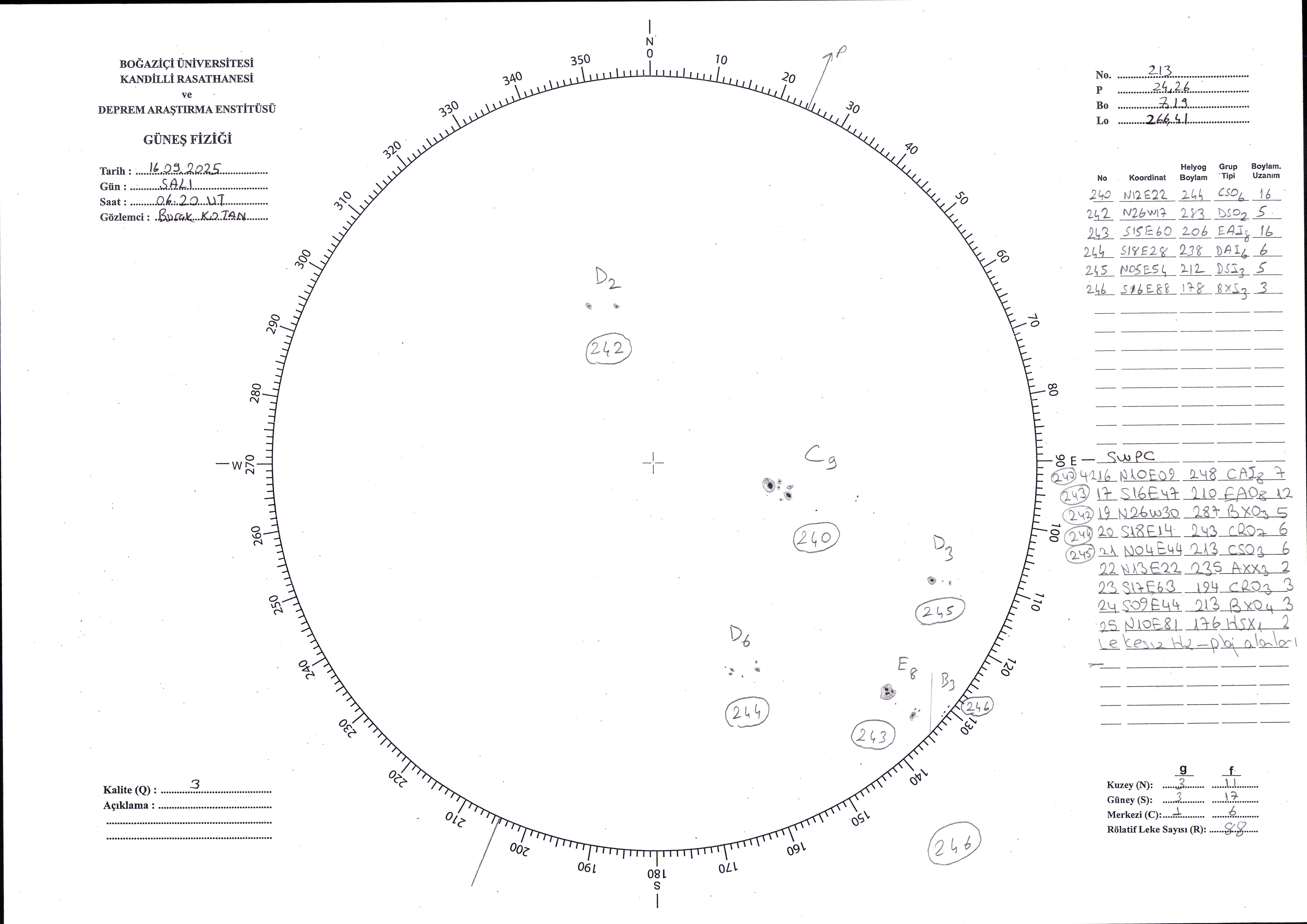 Güneş Lekesi Çizimi - 16.09.2025