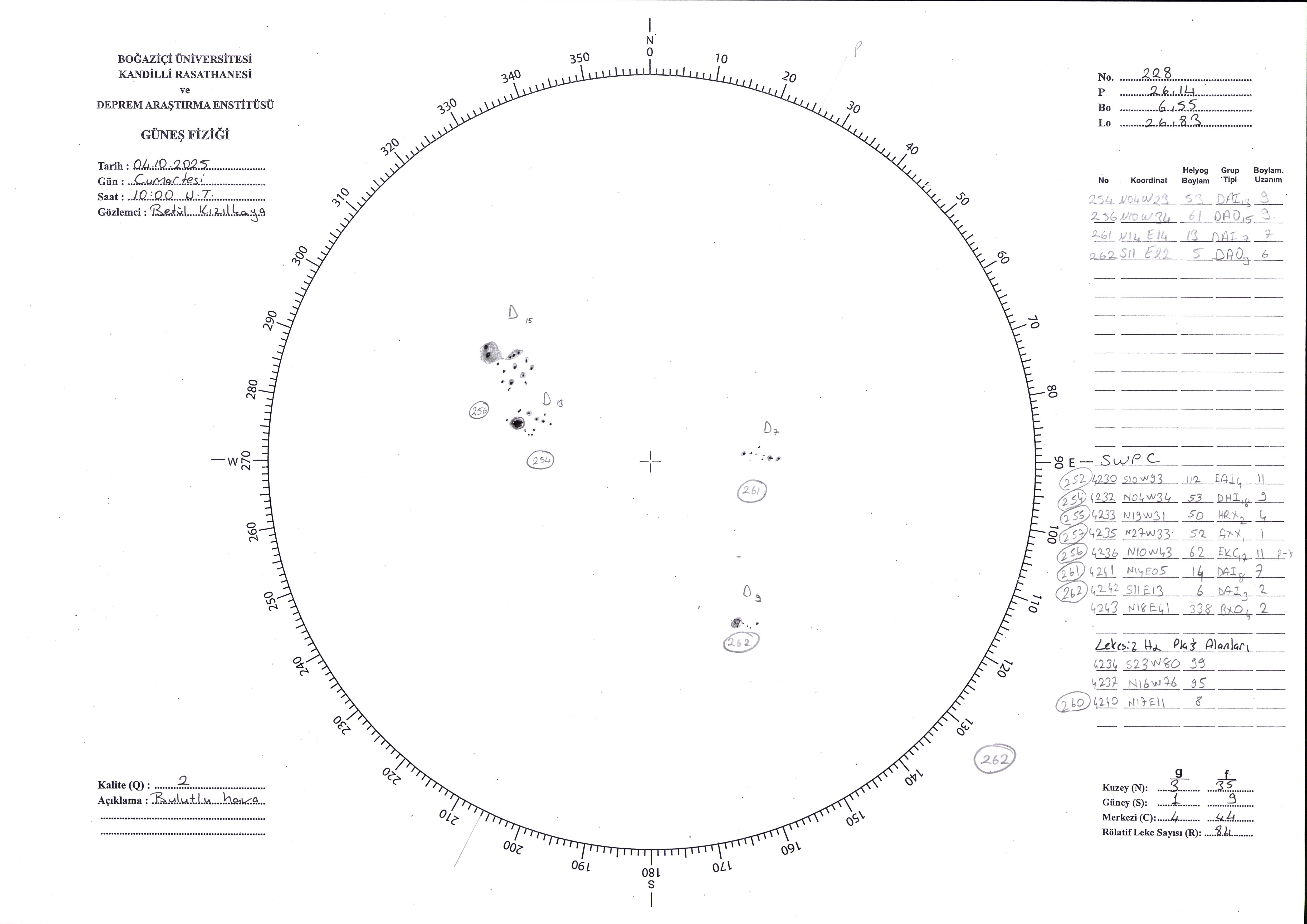 Güneş Lekesi Çizimi - 04.10.2025
