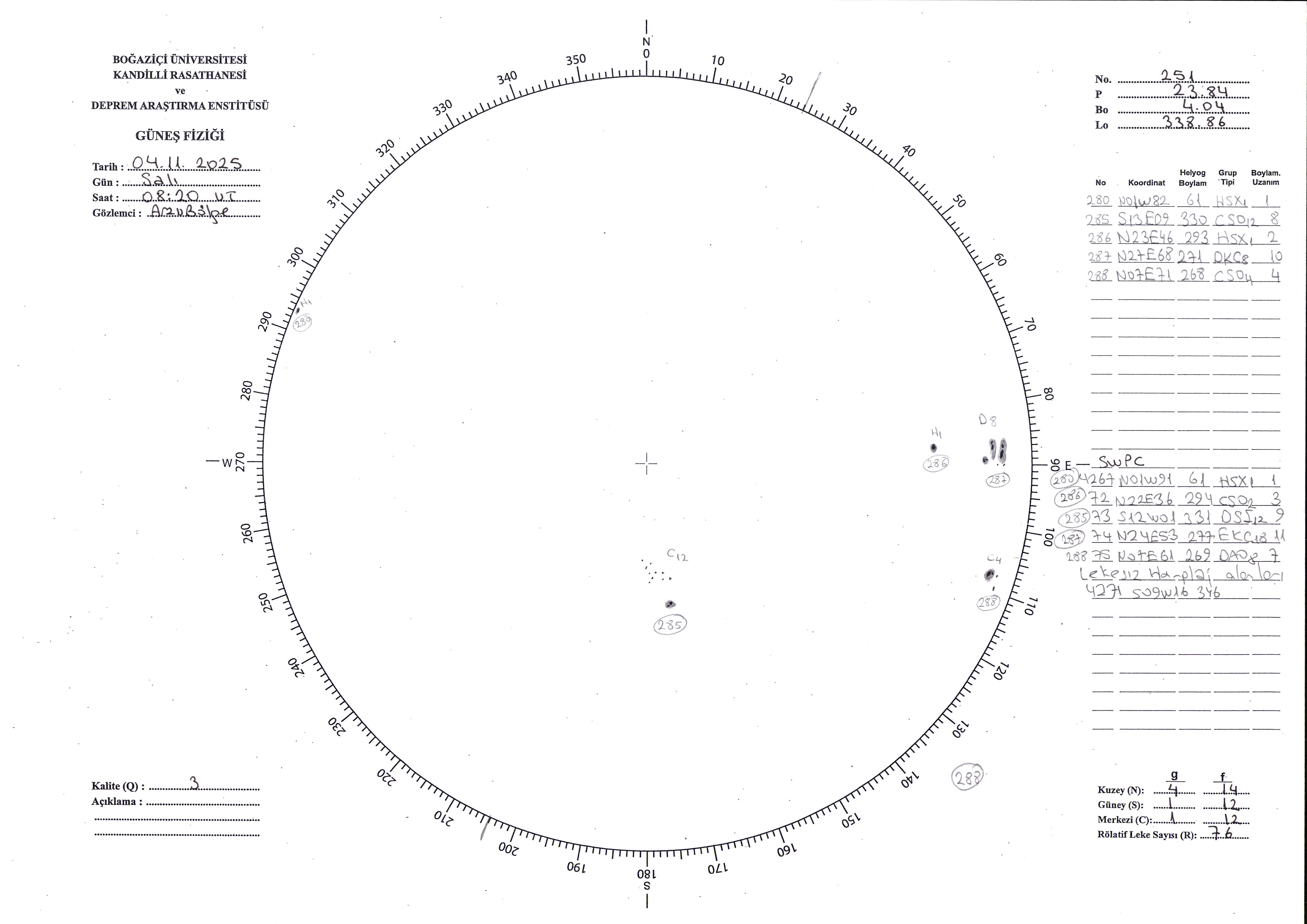 Güneş Lekesi Çizimi - 04.11.2025