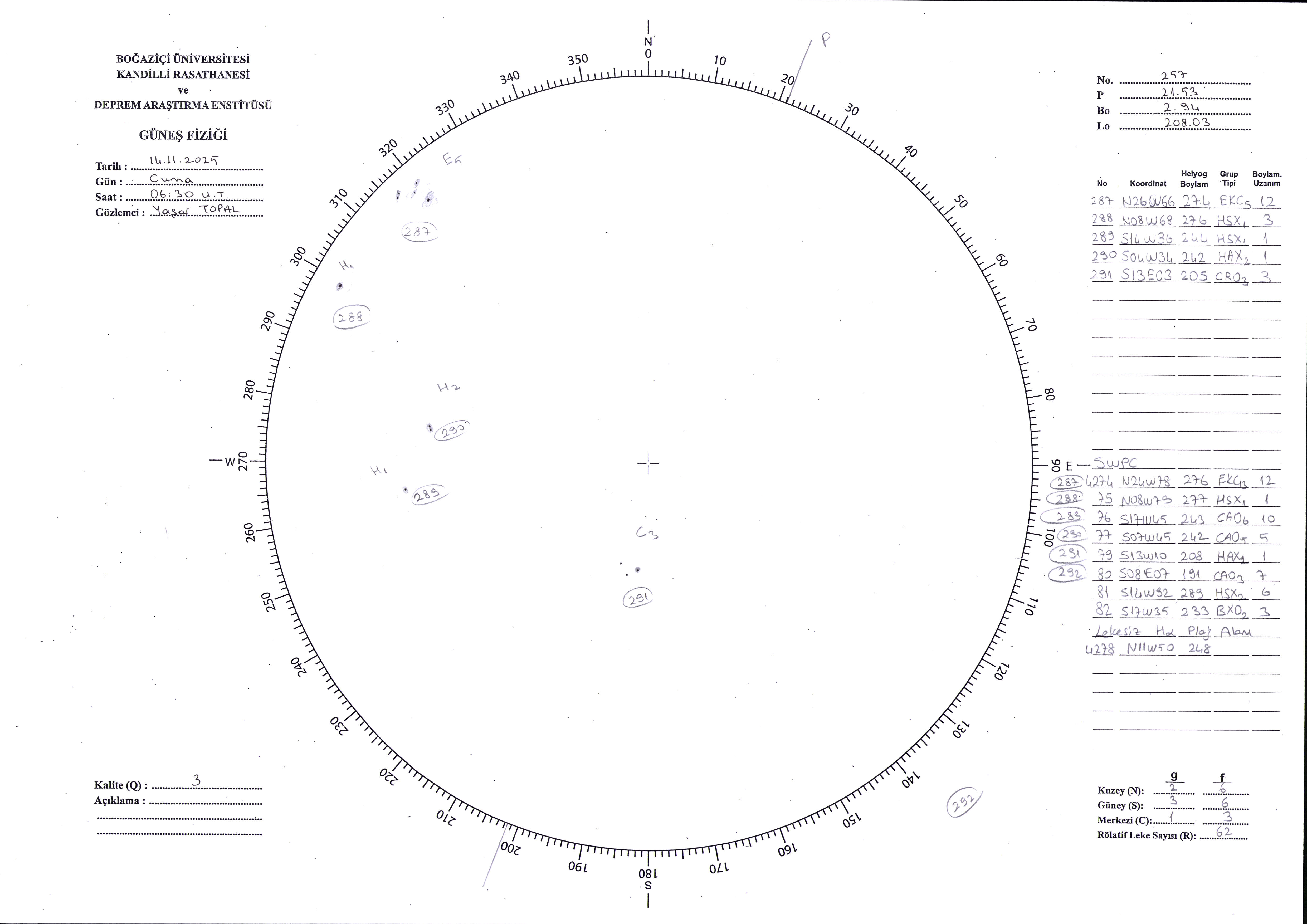 Güneş Lekesi Çizimi - 14.11.2025