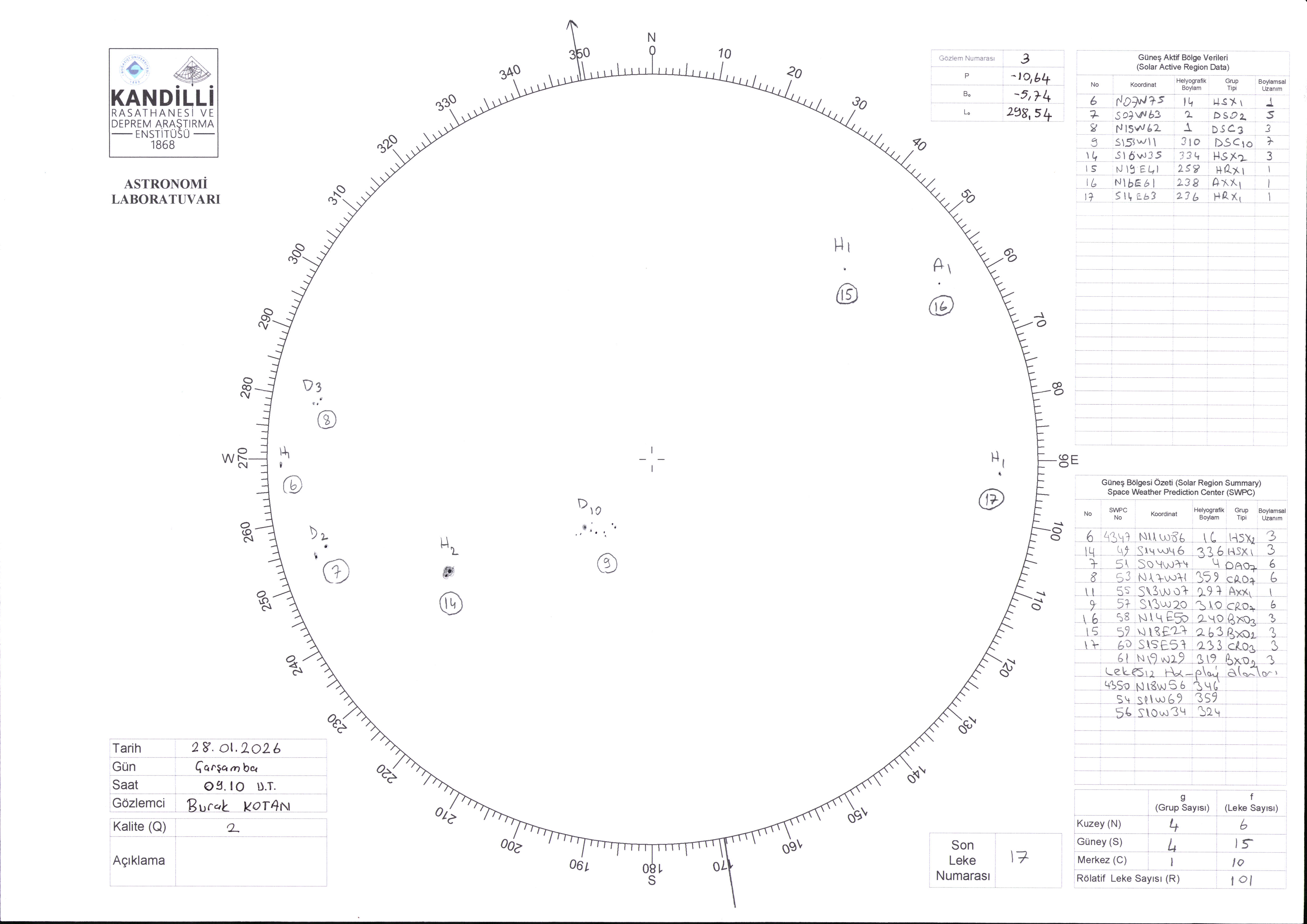 Güneş Lekesi Çizimi - 28.01.2026