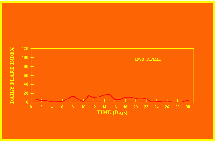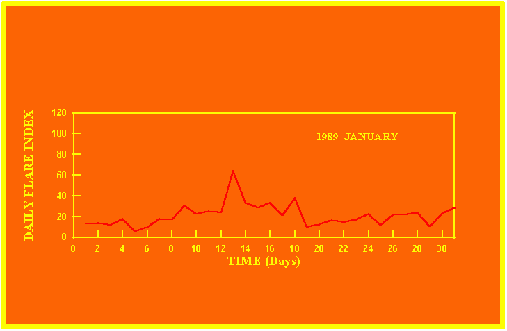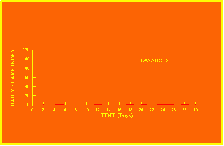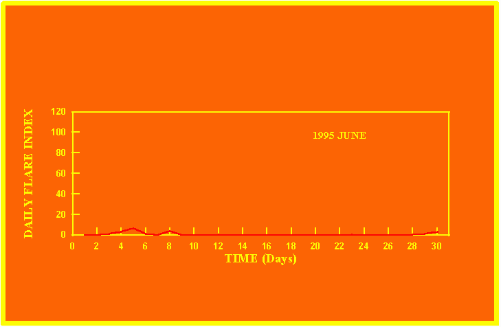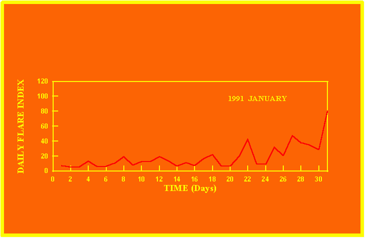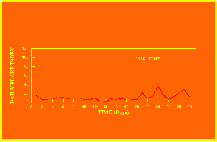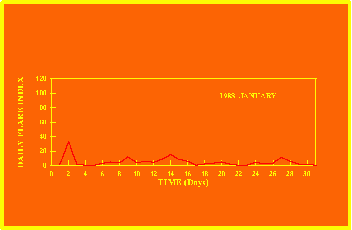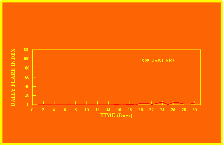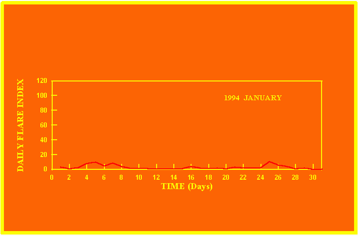 If the value of the daily flare index exceeds 40 once, then the color of that month is red.