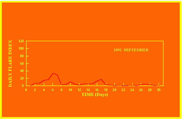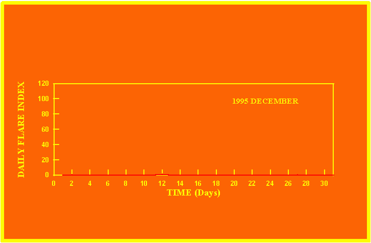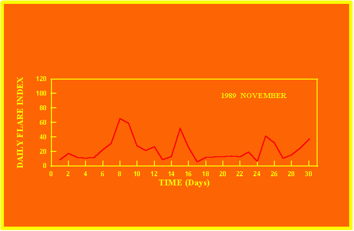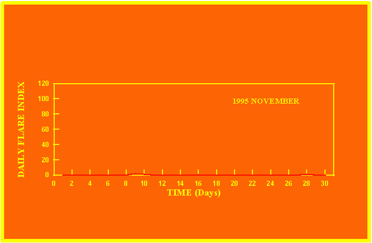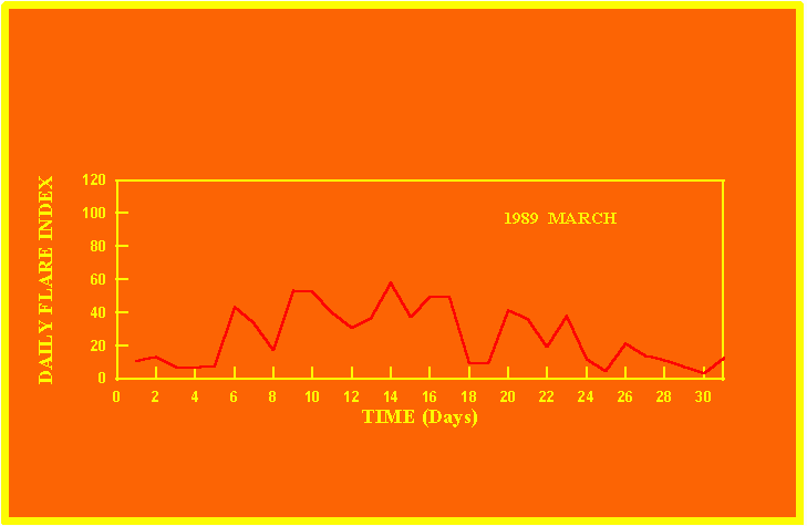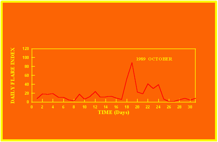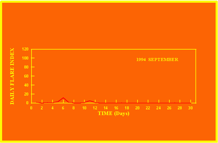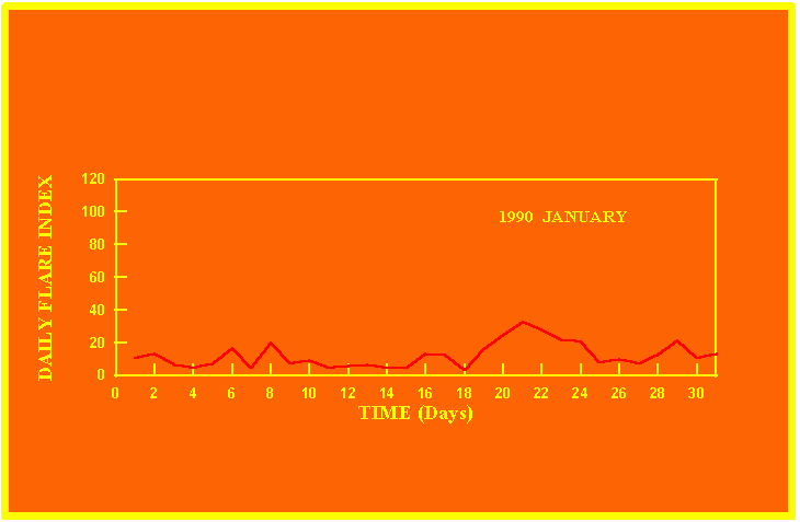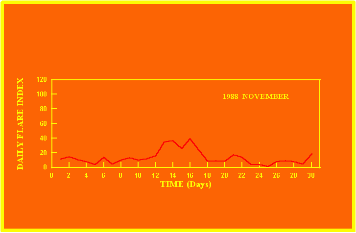 If the value of the daily flare index exceeds 40 once, then the color of that month is red.