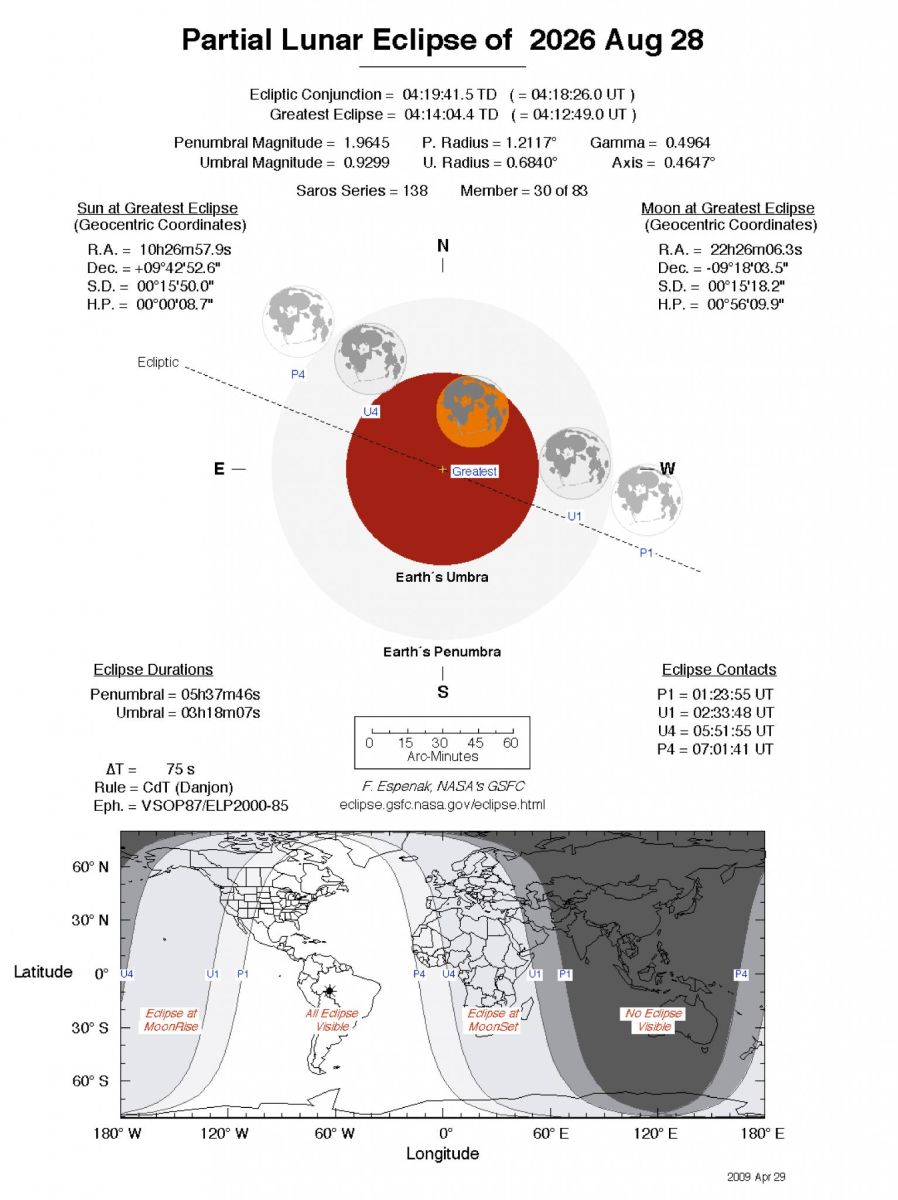 28.08.2026 | Yarı Gölgeli Tutulmanın Başlangıcı | 04:24:29.0 | Parçalı Ay Tutulmasının Görülebileceği Yerler: Avrupa, Batı Asya, Afrika, Kuzey Amerika, Güney Amerika, Pasifik, Atlantik, Hint Okyanusu, Antarktika. |